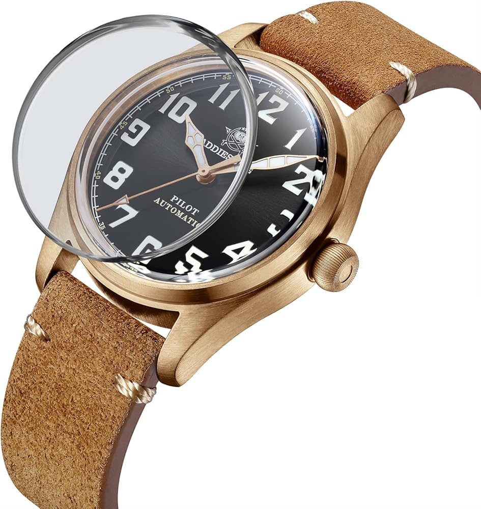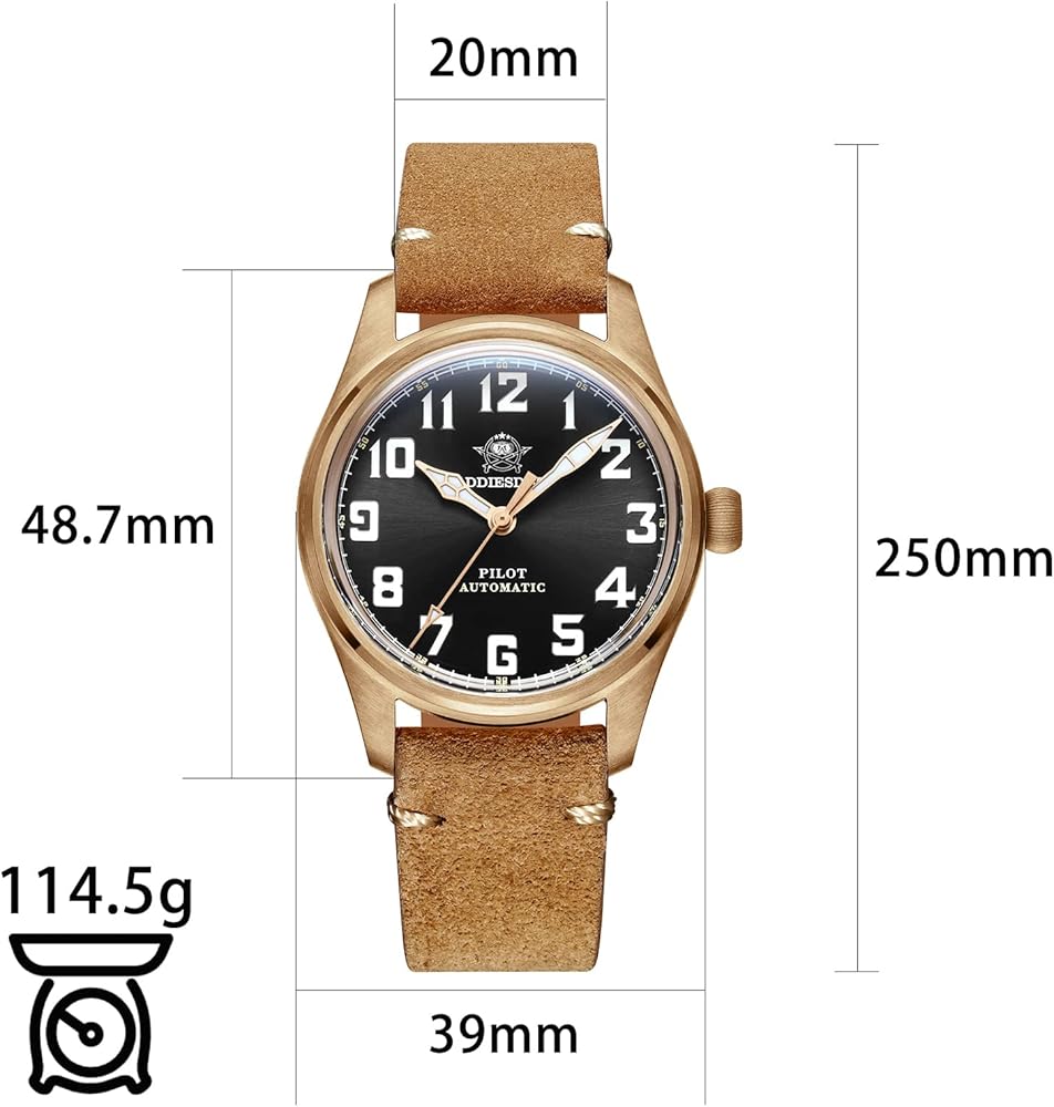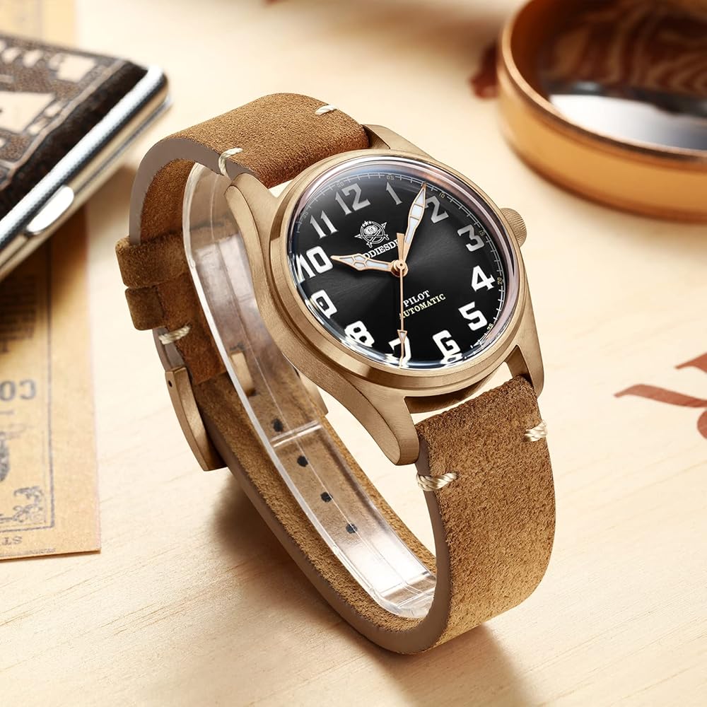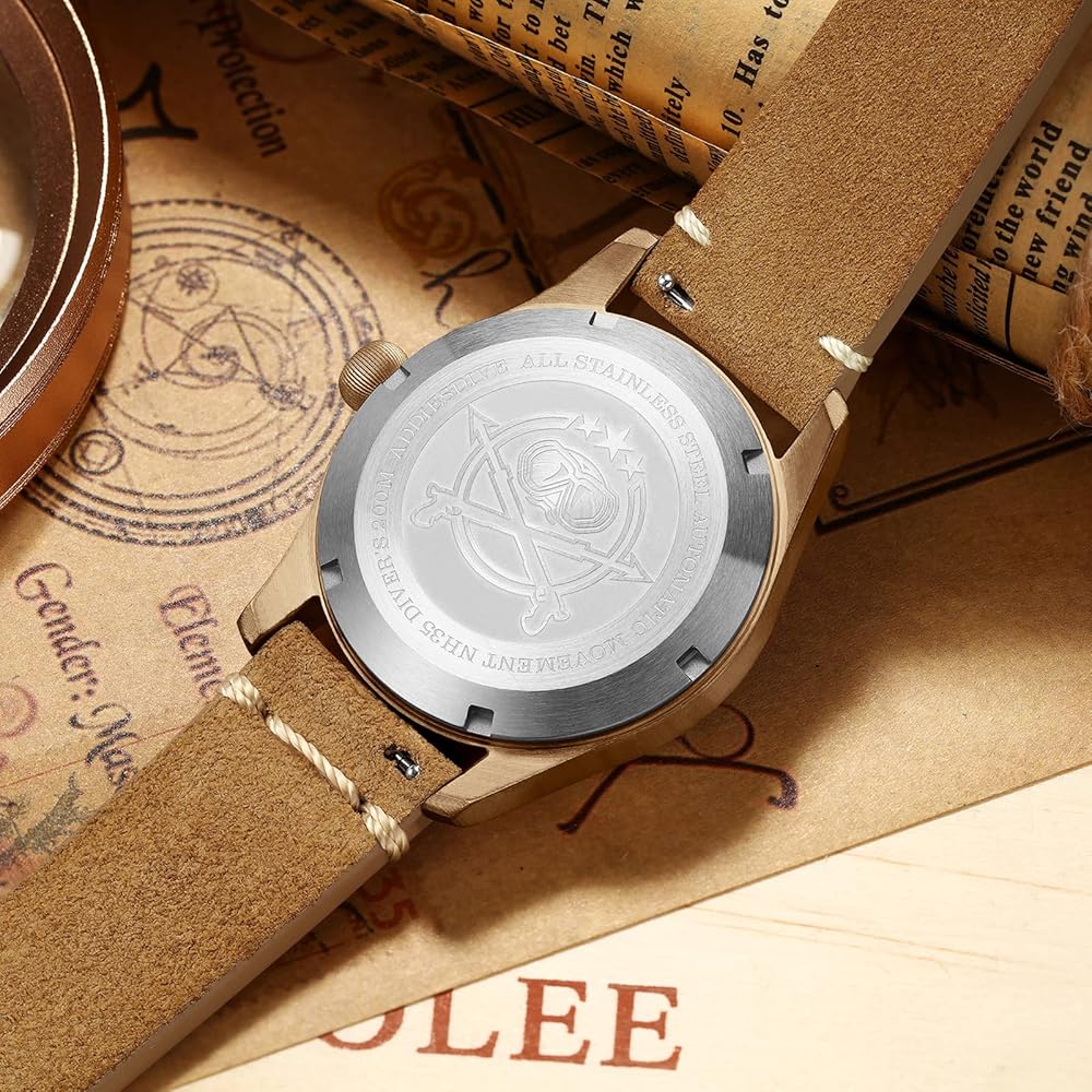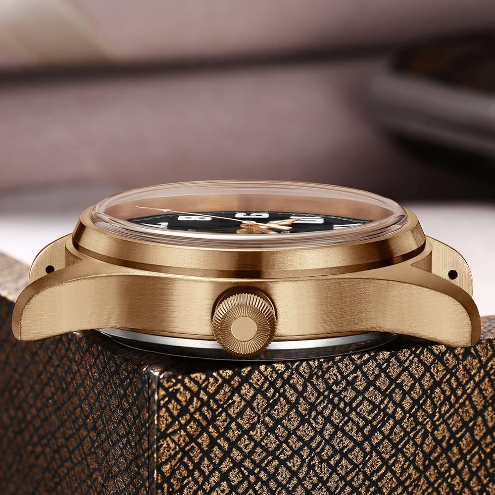 【Total Bronze】: This watch is more bronze than normal bronze watch, the case, the buckle and the crown are total solid bronze.Since the bronze watch is oxidized depending on the environment, it is normal for the watch to have stains, water stains, and the color of the case to become dull after receiving the product and during use.