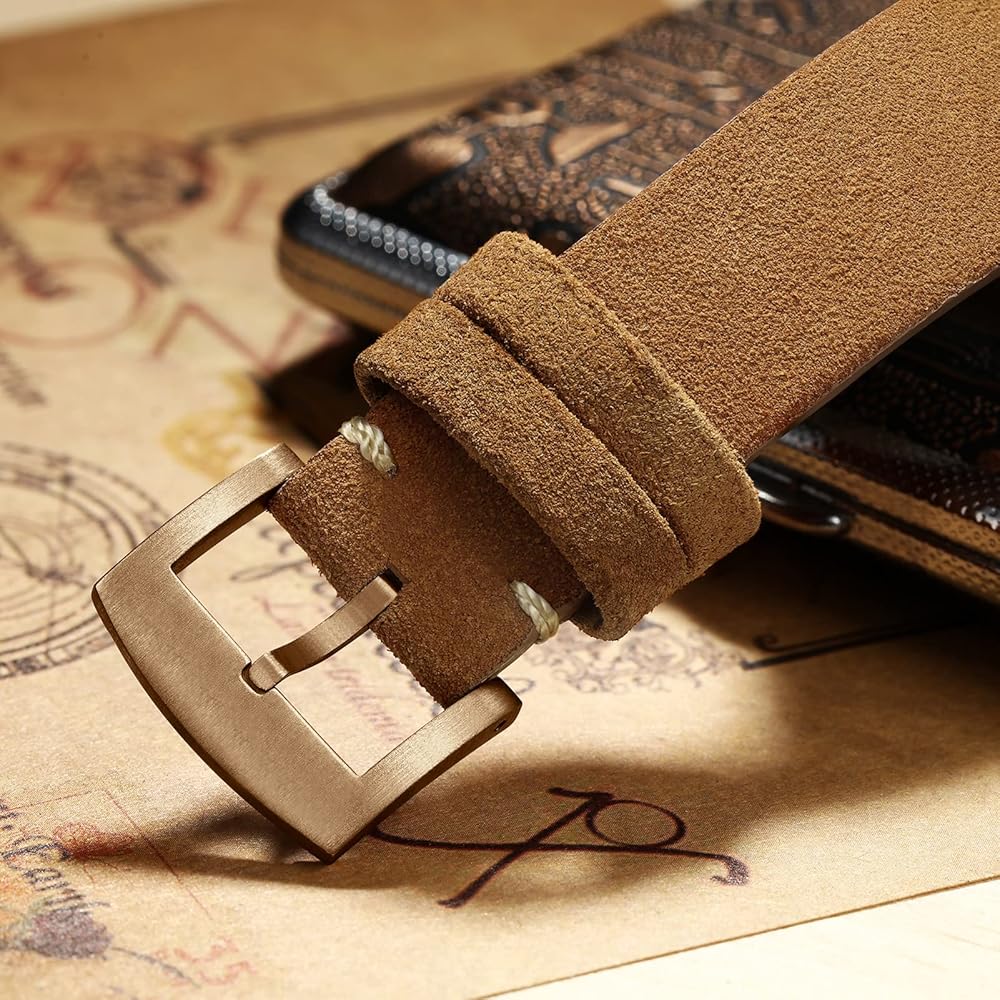 【Material】: CUSN8 bronze case crown buckle,total bronze watch, synthetic sapphire crystal,suede leather band