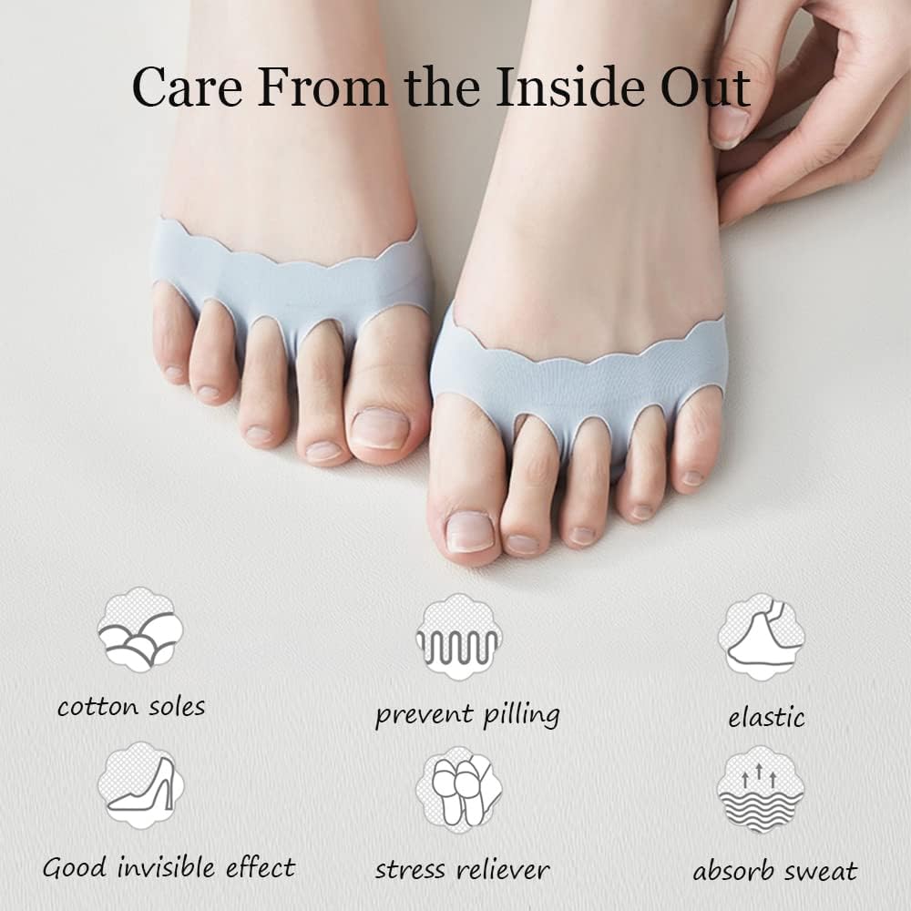 • 〖Comfortable Metatarsal Foot Pads〗: the ergonomic forefoot split toe design, while dispersing the pressure on the soles of the feet, gives you a comfortable experience in both foot feel and appearance. the completely invisible design can be used with various styles of shoes (especially high-heeled shoes).