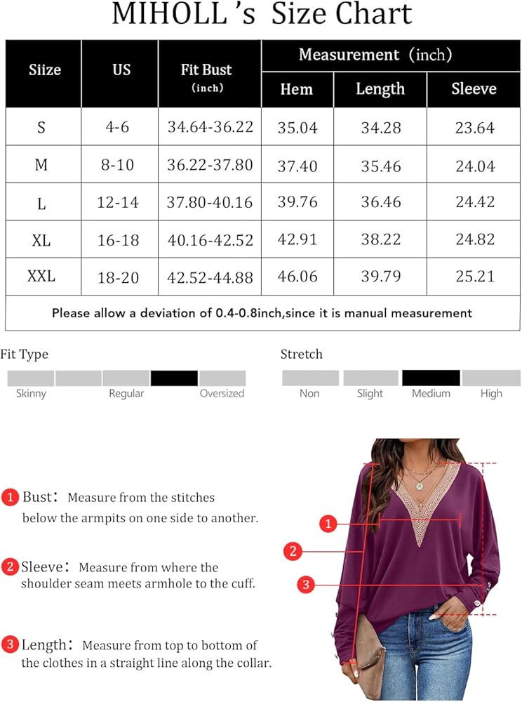 Note: Machine washable, hand wash recommended with cold water. This new style lace tops is available in regular fit standard US sizes, so choose your usual size.