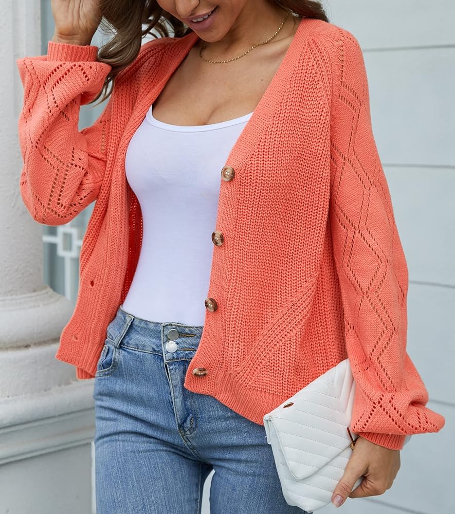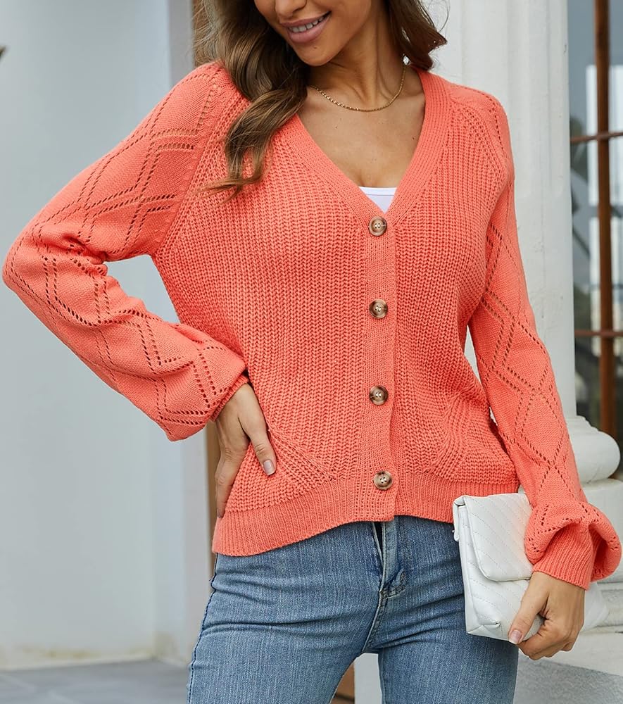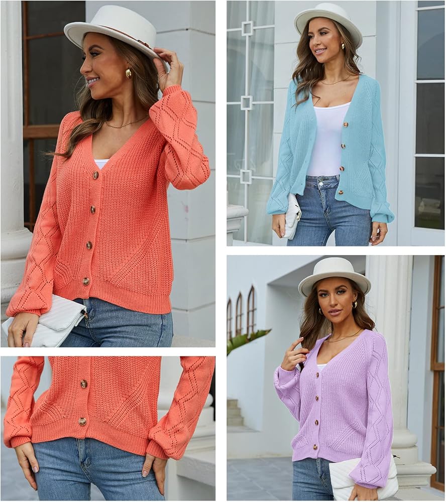 CLASSIC STYLE?? Ribbed knit sweater/Waist length/Dropped shoulder/Button down/Long sleeve/Diamond pattern/Deep V-neck, classic-fit, designed in an artfully silhouette. The slim cardigan tops coat fit great for spring and fall.