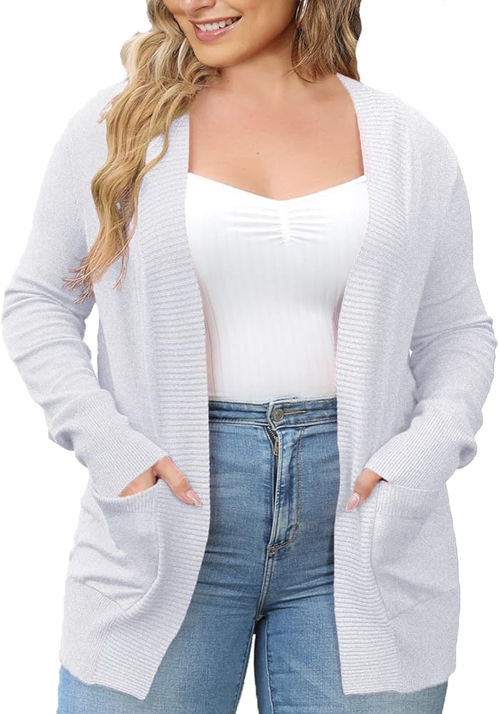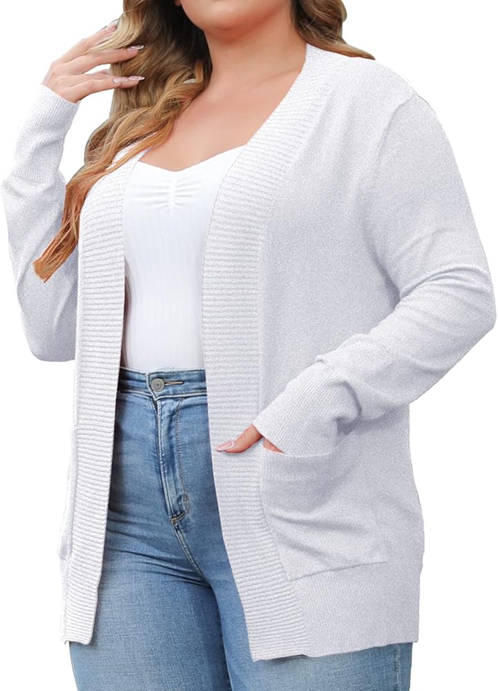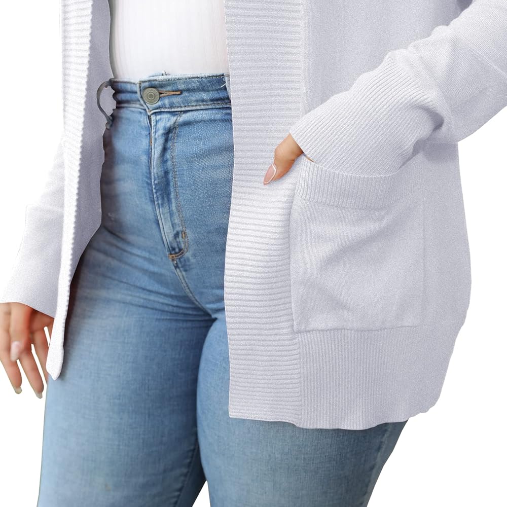 VOIANLIMO Women’s Cardigan with Pockets Open Front Long Sleeve Knit Plus Size Cardigans Sweater for Women, 0X-4X