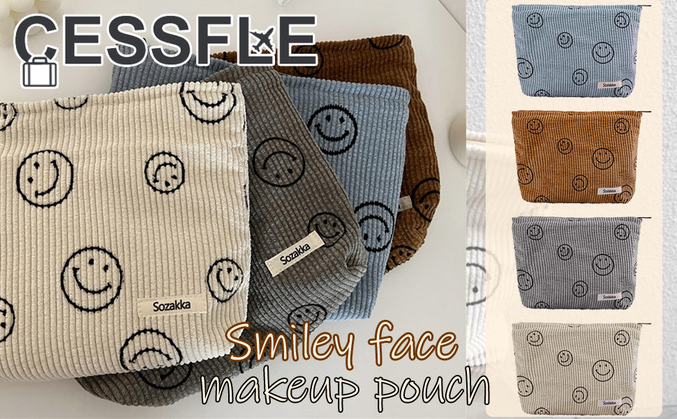 【Preppy cute Face Style】Smiling faces of different sizes are scattered on the surface of the cosmetic bag.The overall feel of our toiletry bag is elegant and minimalist which is very easy for you to match various styles of clothes.