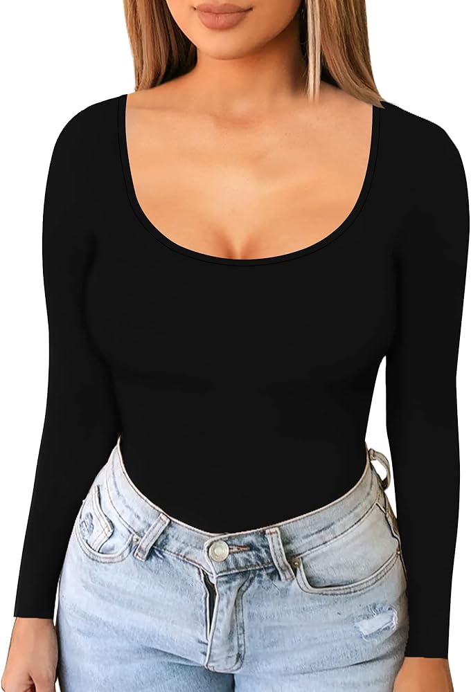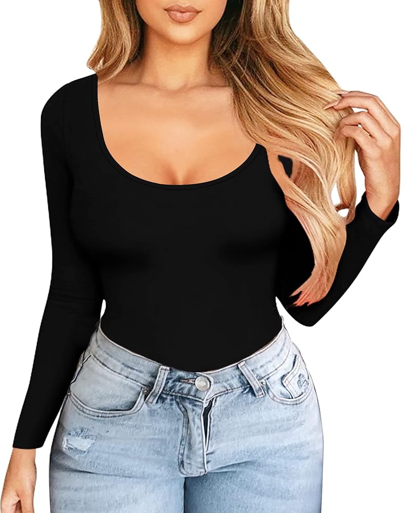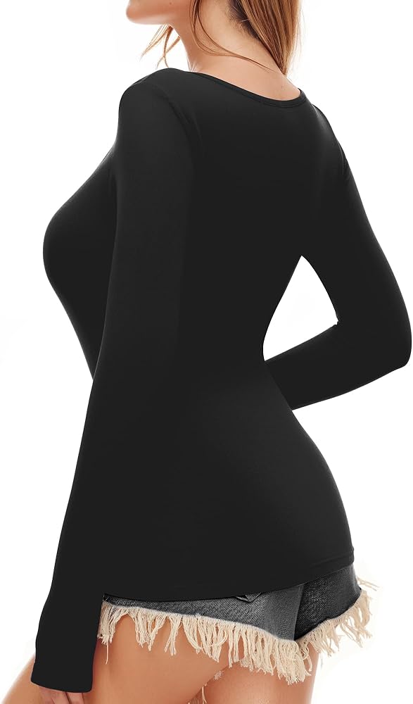 ALGALAROND Long Sleeve Shirts for Women Basic Scoop Neck Tops Ribbed Slim Fit T-Shirts