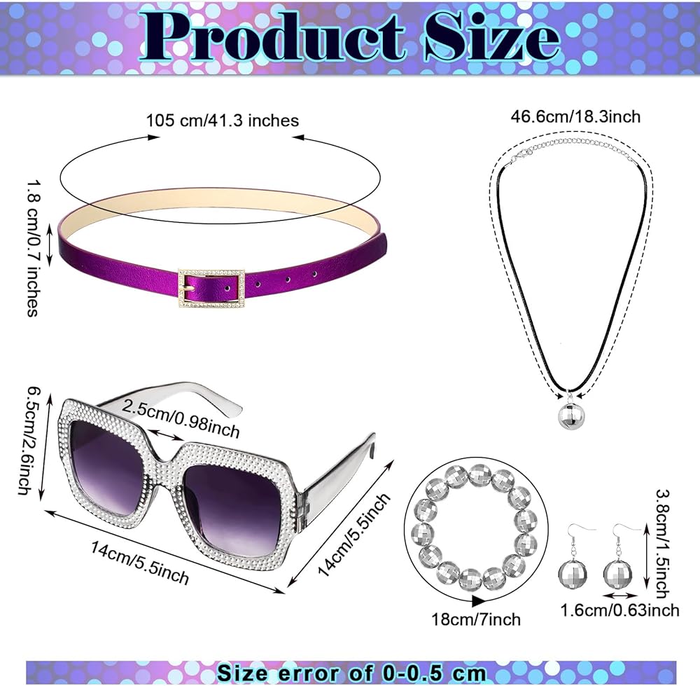 These disco costume accessories are ideal for 60s or 70s parties, summer events, daily use, retro themed costume parties, music festivals, Halloween parties or Valentine's carnivals, masquerade, costume cosplay party, wedding reception, theater, masquerade dance party and so on.