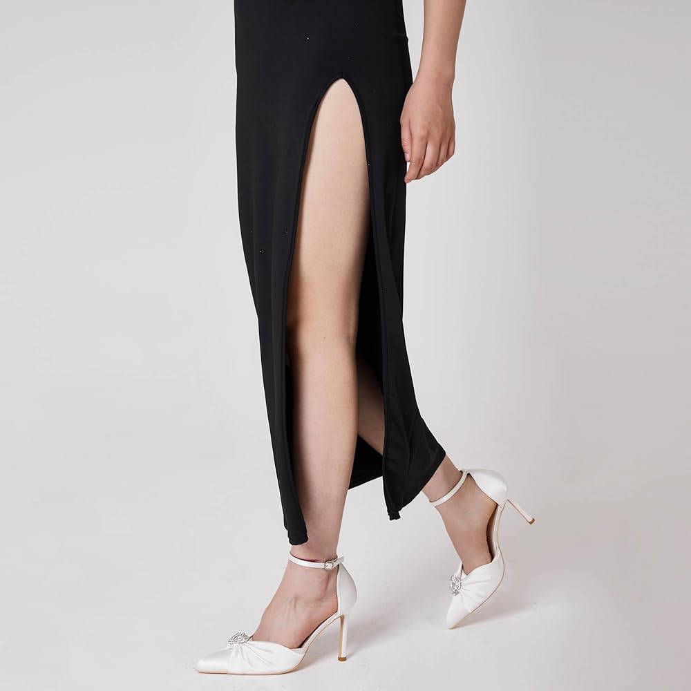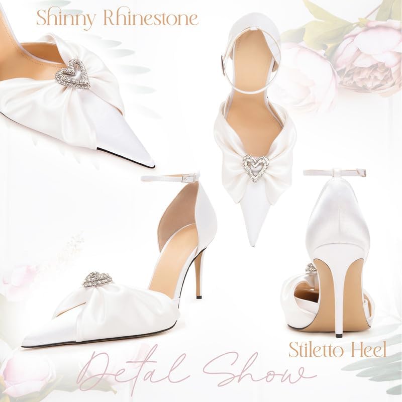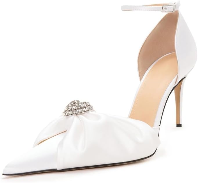 [Design] Sexy white heels for women, the high heels with sparkly rhinestone, thin stiletto heels and bandage to help increase the stability, also the ankle strappy and charming diamond make the womens pumps elegant and fashionable.