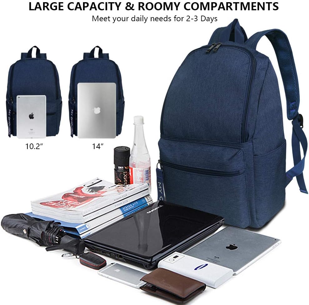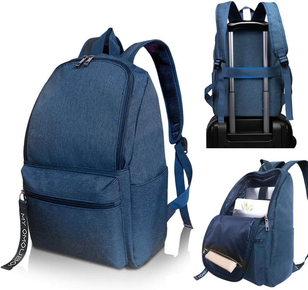 OMOUBOI Backpack for Men Small Work Latop Back Pack Women College Bookbag Fits 14 Inch Computer Classic Casual Daypack Water Resistent Backpack for School,Travel, Work, Business - Blue…