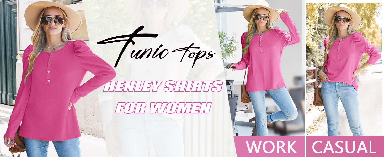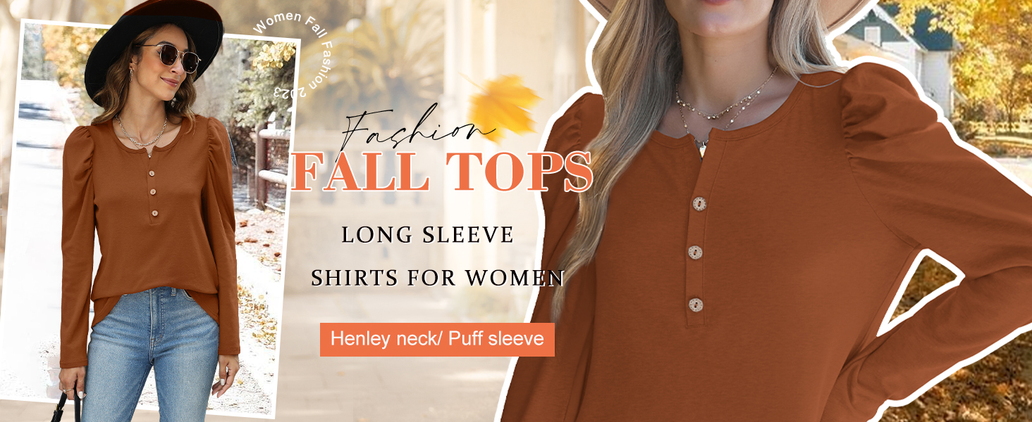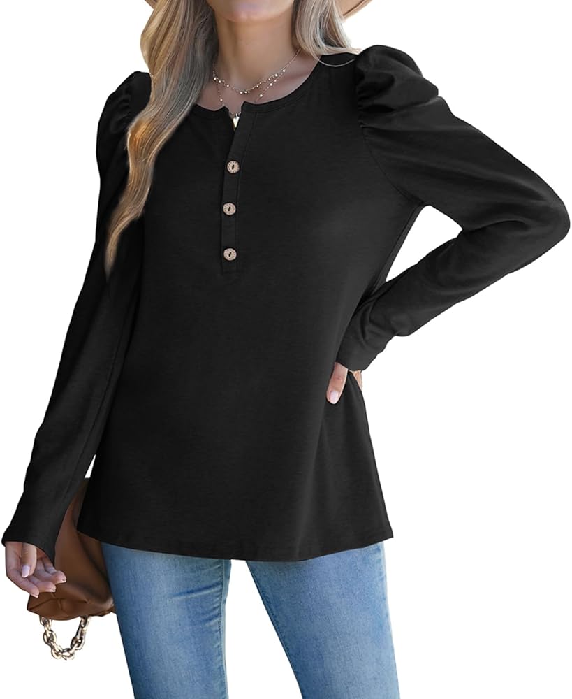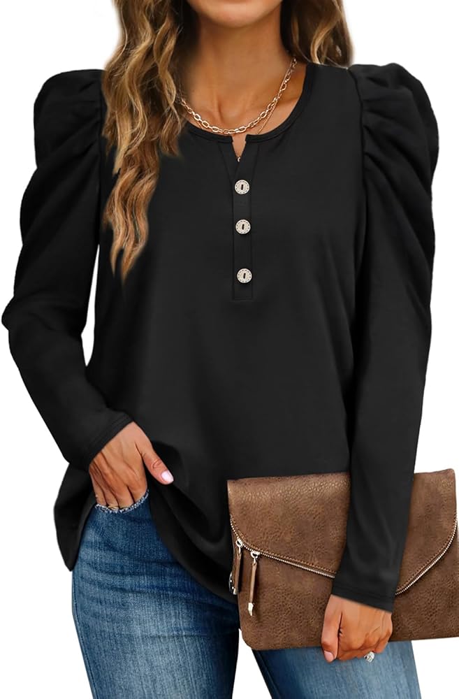 Feature: Unique Puff Sleeve design combined with classic henley crewneck, soft fabric specially for fall/winter. The extra detail adds elevate the shirt so it moves beyond a casual piece into a dressier looking piece.