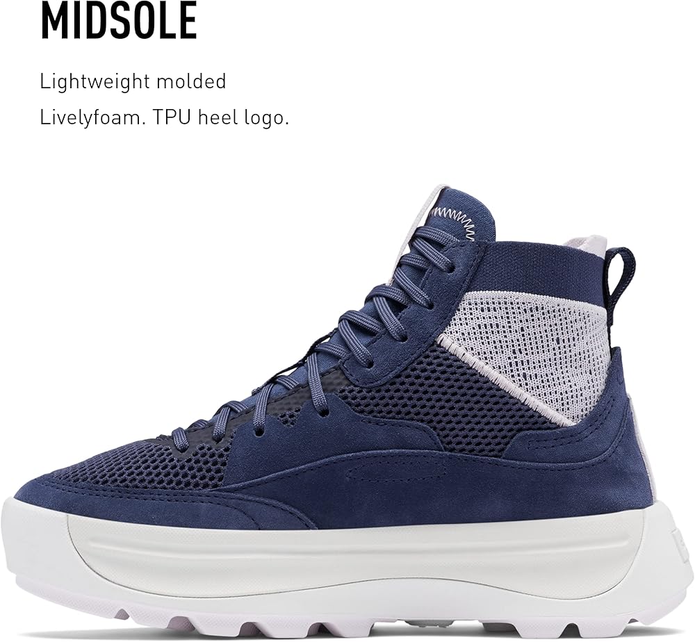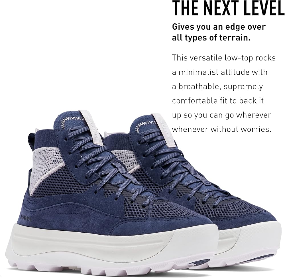 Stand out from the crowd with these ONA 503 Knit Mid sneakers that are crafted to take your style game to the next level. SOREL ONA 503 Knit Mid sneakers are built to withstand the wear and tear of everyday life and will take you from day to night in no time at all. This versatile high-top rocks a minimalist attitude, with a breathable, supremely comfortable fit to back it up. It features an elevated platform with a molded rubber sole that gives you an edge over all types of terrain. These eye-catching sneakers combine punchy colors, eco-friendly materials, and a midsole featuring up to 10% Bloom. The 10% Bloom is a material made with algae biomass harvested from freshwater sources. It contains molded rubber with ground contact EVA, a custom knit collar design combined with a breathable mesh upper and suede combination. These women's sneakers help you ascend to new heights with their comfortable, fancy design, and the material is also durable, giving you all-day wearability. Their breathable mesh in a bootie construction with gore detail gives a secure fit while the breathable holes keep your feet cool and dry. These women's sneakers are perfect for exercises and sports such as running, jogging, cycling, football, and gym. These sneakers are a perfect combination of style and comfort.