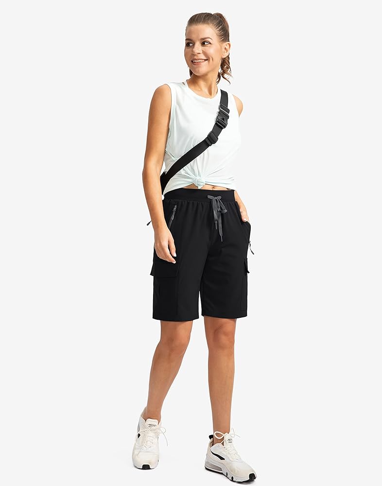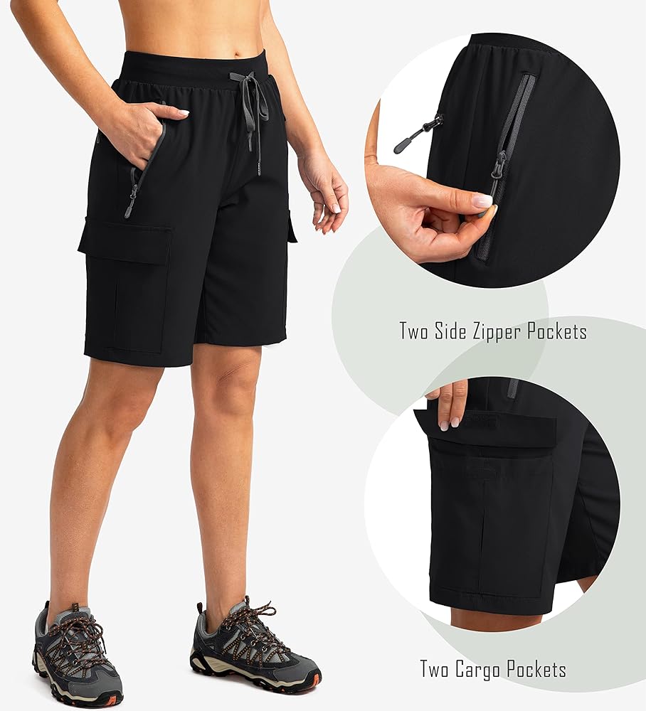 9'' Long Inseam: The womens 9 inch inseam shorts provide enough coverage from sunshine. They are perfect for hiking, golf, travel, camping, climbing, kayaking, walking and daily casual wear.