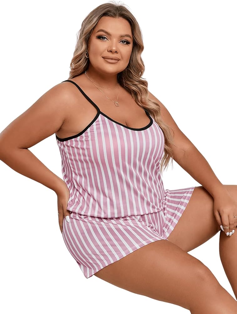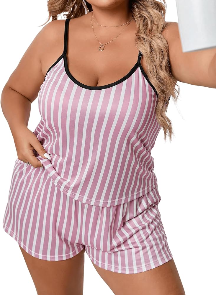 - Spaghetti strap, plus size,cherry print, cami top, elastic waist, shorts, 2 piece sleepwear suit