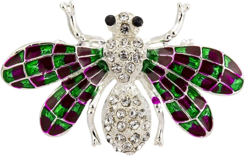 Knighthood Silver Bee With Swarovski And Green Purple Abstract Wings Brooch