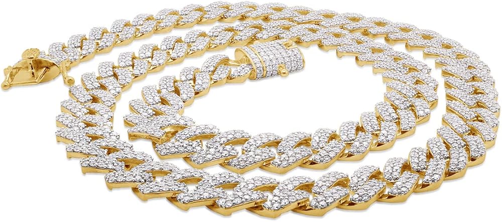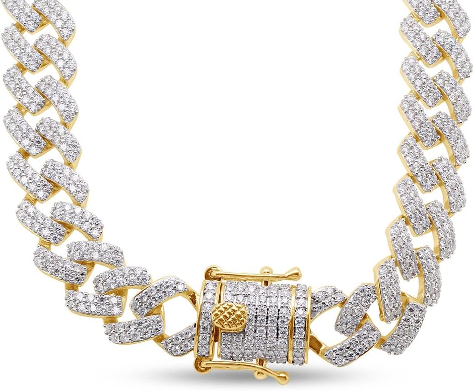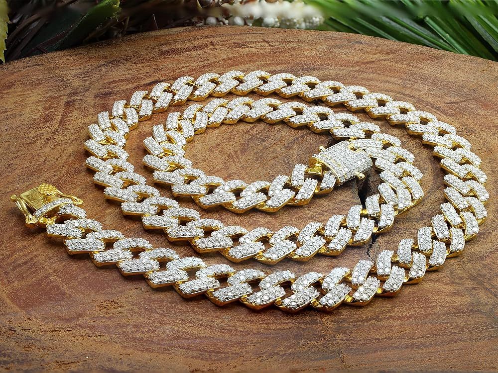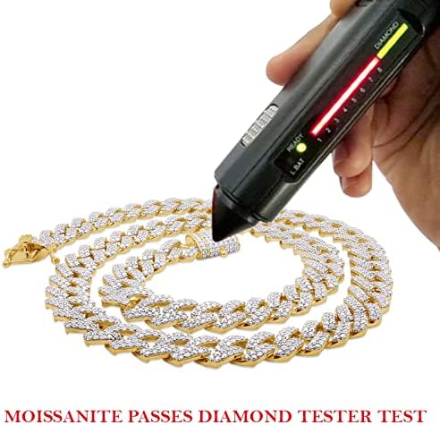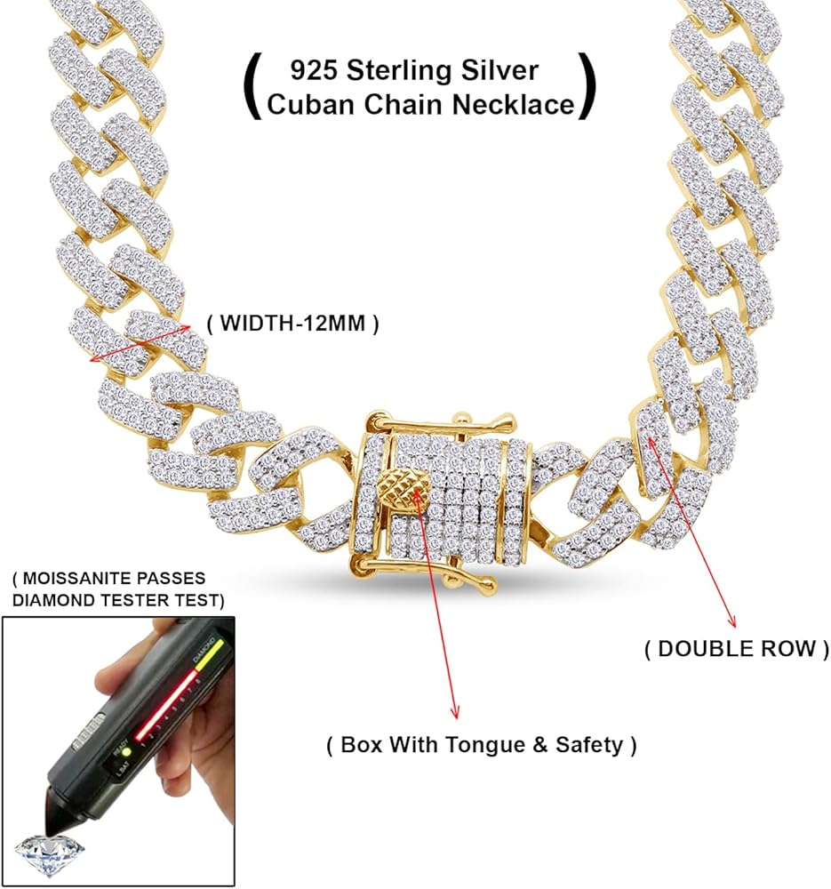 These Cuban Chain Necklace Is crafted in 14k White Gold Over Sterling Silver with 925 Sterling Silver 20" , 22.00 Carat (Cttw) moissanite, Width 12MM, Round Cut, VVS1 Clarity G-H Color, Very Good Cut