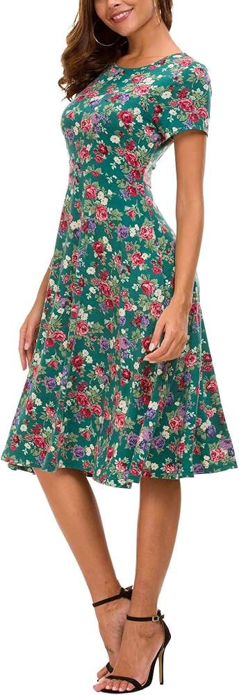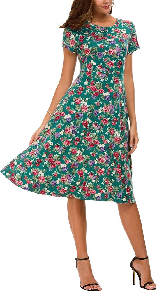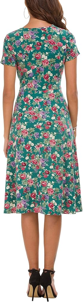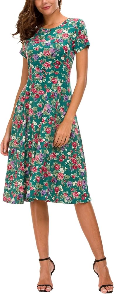 Urban CoCo Women's Floral Print Short Sleeve Flared Midi Dress