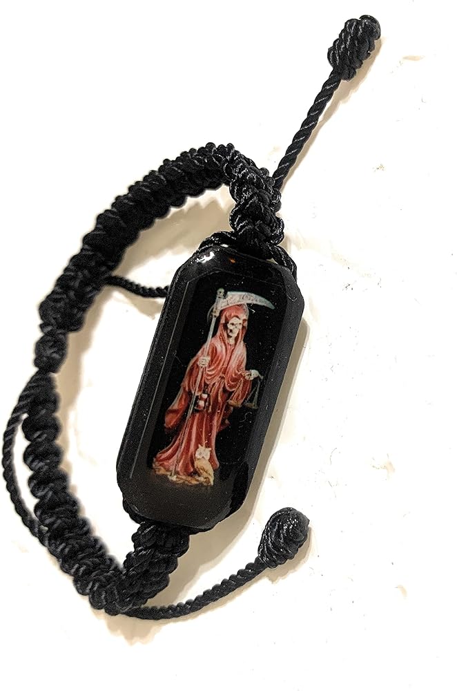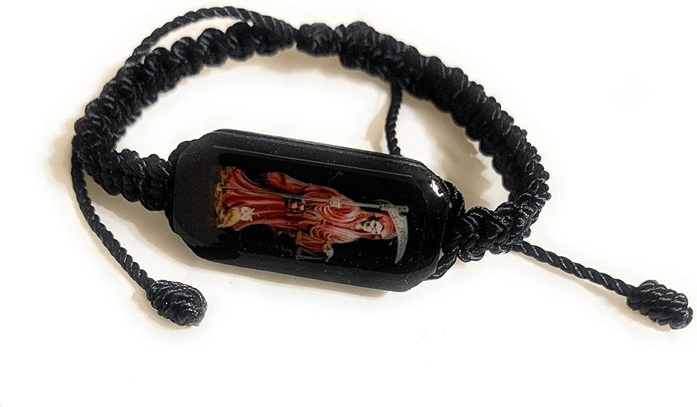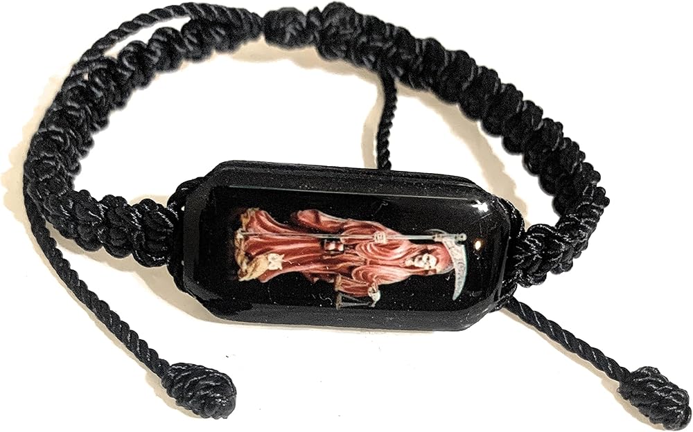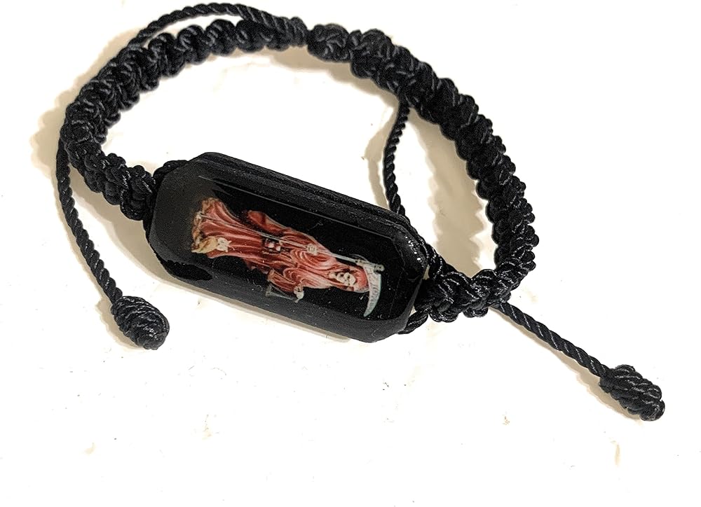 Black thread adjustable Santa Muerte bracelet.. If you have any other questions please feel free to contact us.