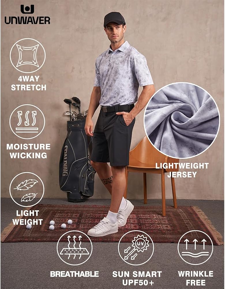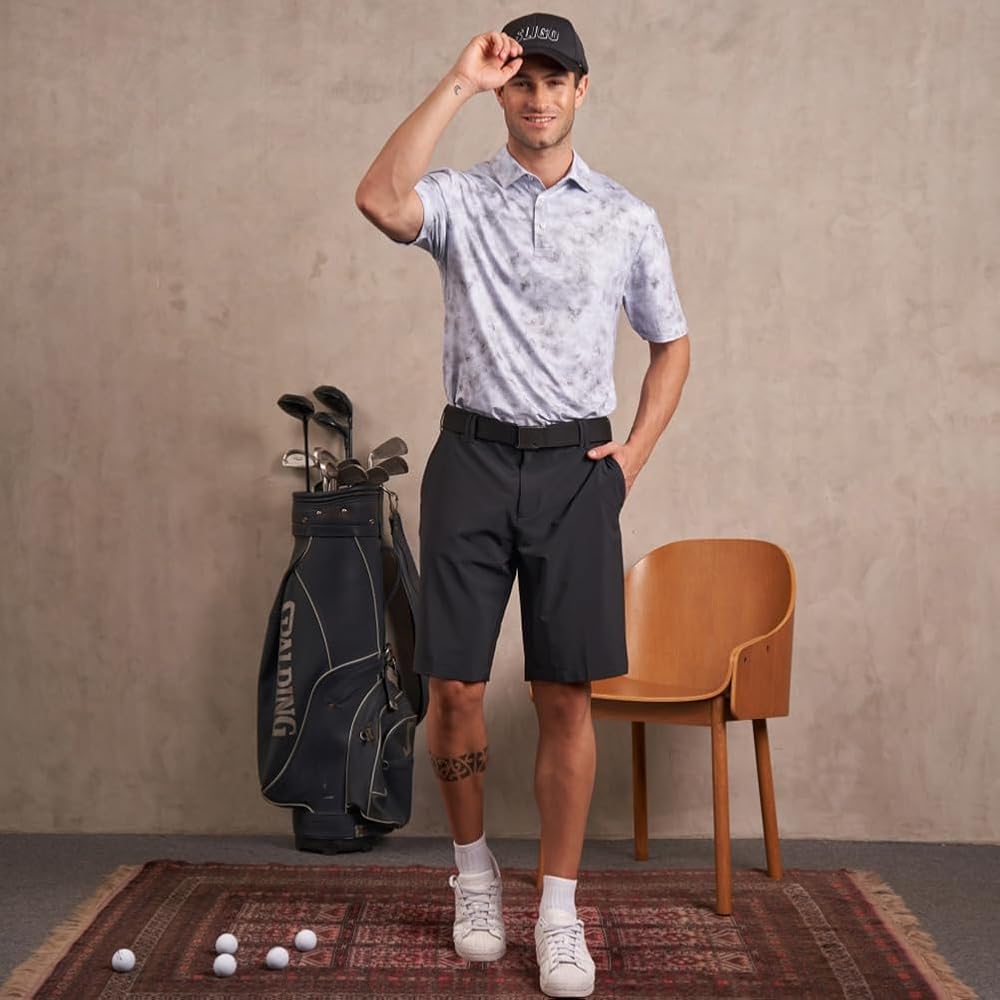 ❰Exists for Any Shape❱ Find your fit with flexible, stretchy fabrics that adapt to the body's shape and movements. Our short sleeve golf shirts move with you, providing unrestricted mobility and a comfortable, non-restrictive fit.