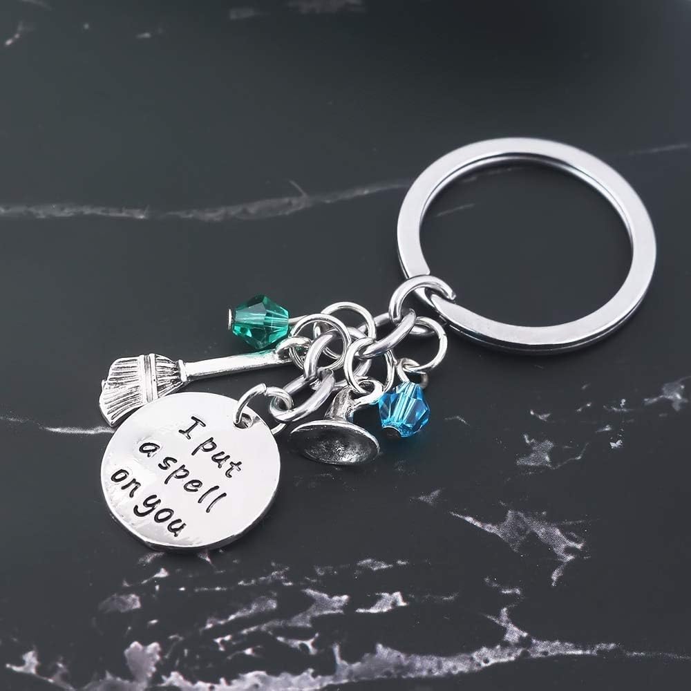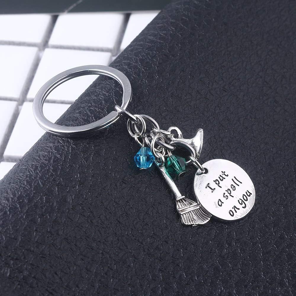Art Attack Put A Spell On You Hocus Pocus Halloween Cute Pocket Keychain Witch Hat Charm Party Favor for Women Girls Aqua Green Bead Pendant Key Ring (Silver)