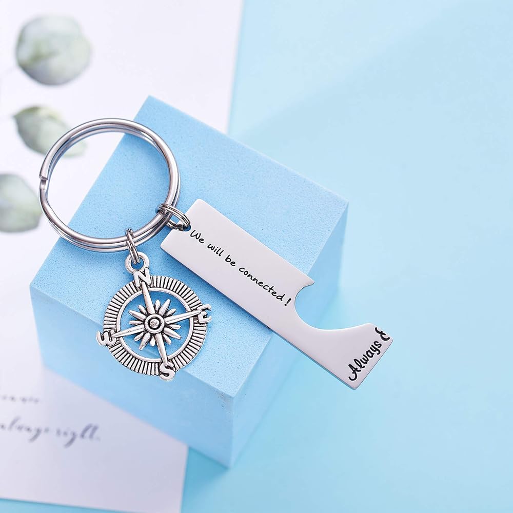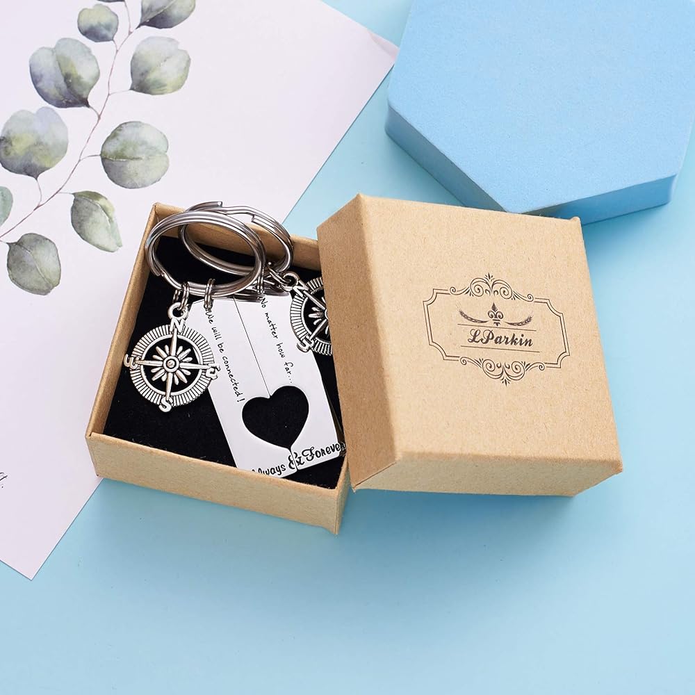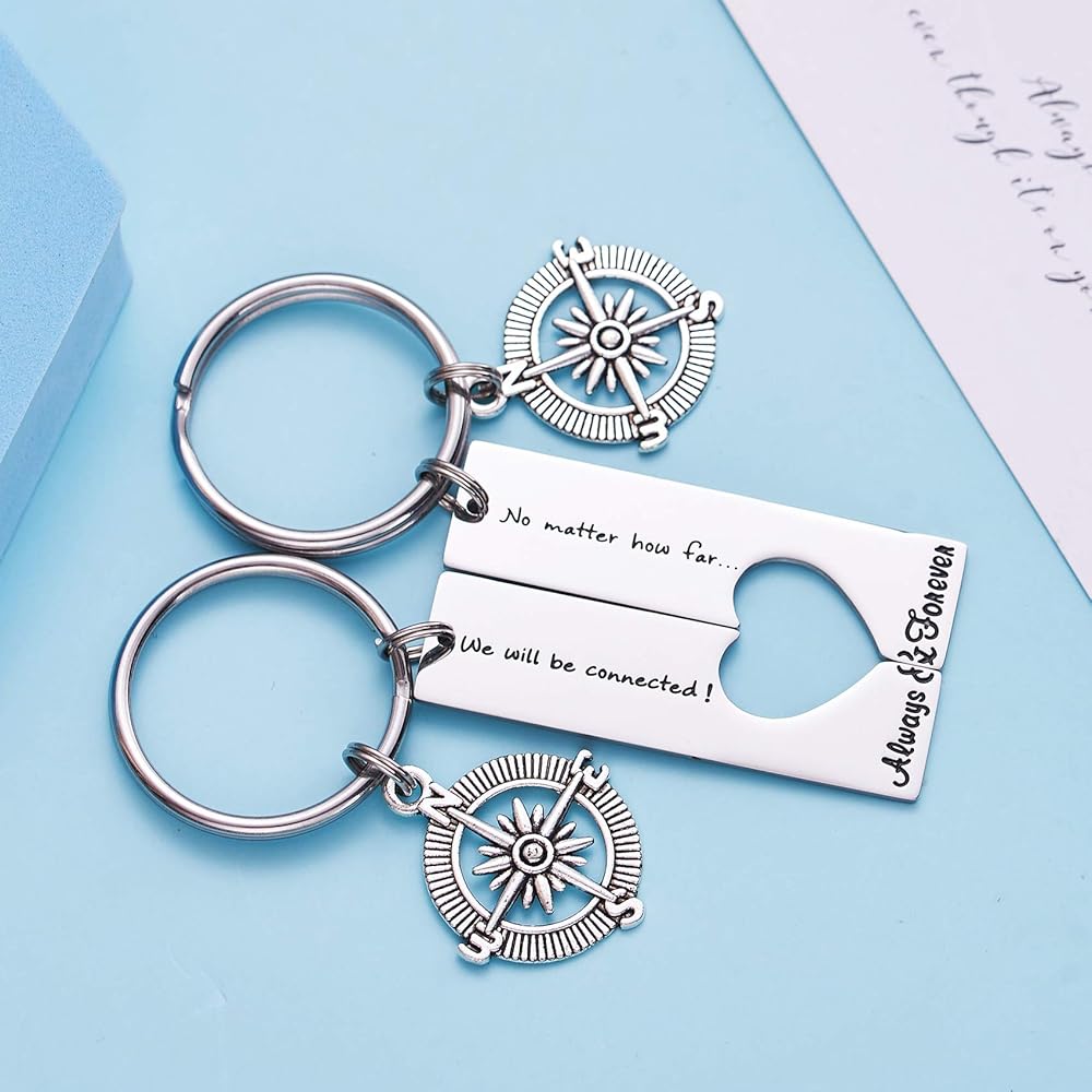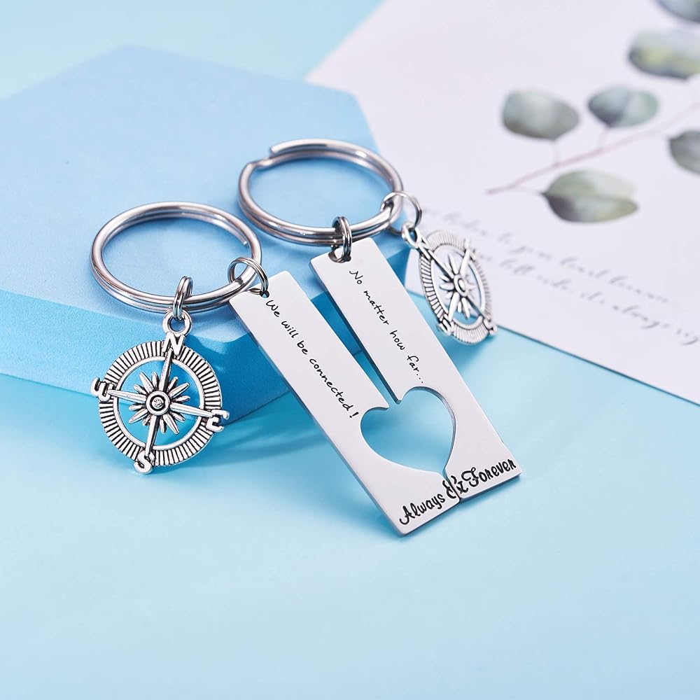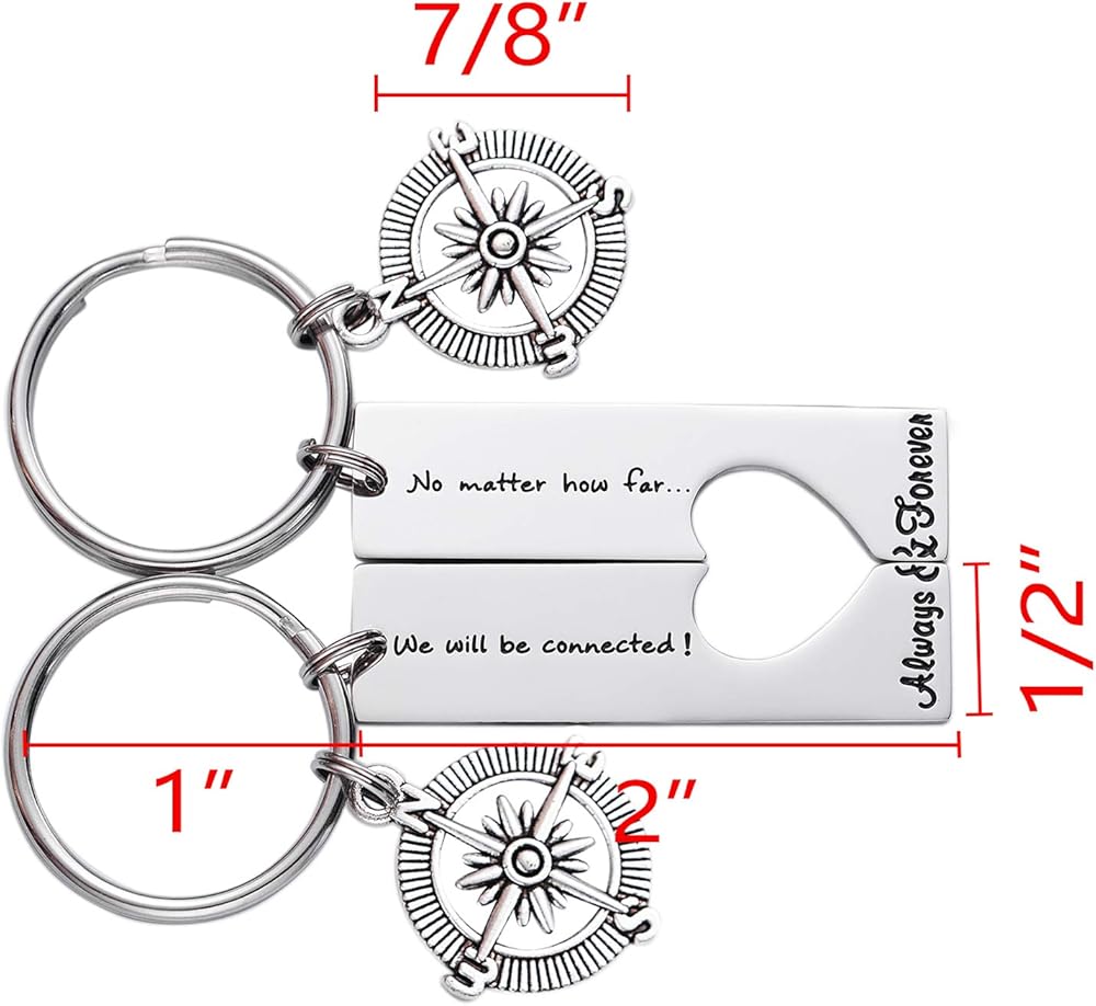 Long Distance Keychain Set Best Friend Long Distance Friendship Relationship Gift Polished Finish Set