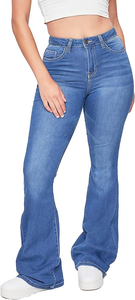 Our Junior's Hyperdenim Super Stretchy Basic Flare Jean feature a classic 5 pocket construction, single button closure with front zipper, and belt loops. Your new go-to closet staple.