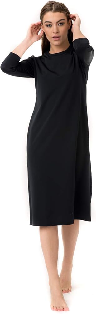 The Undercover Waterwear Long Black Swim Dress is a versatile and popular number that works well in a variety of sports. Whether you're SELF-CONSCIOUS and feeling OVER-EXPOSED in a bathing suit don't worry, we've got you covered.