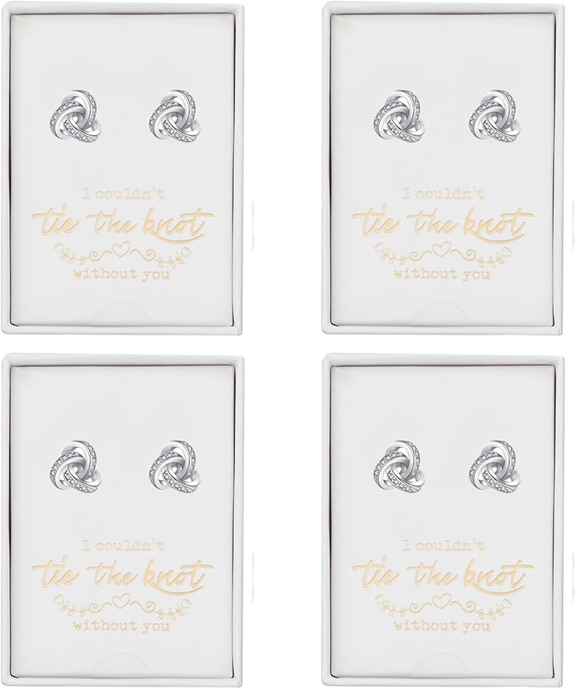♥Exquisite Packaging♥: 4 Piece * Love knot stud earring set, come with beautiful jewelry gift box,inside with "I Couldn't Tie The Knot Without You" bridesmaid card,showing that your friendship is unique.