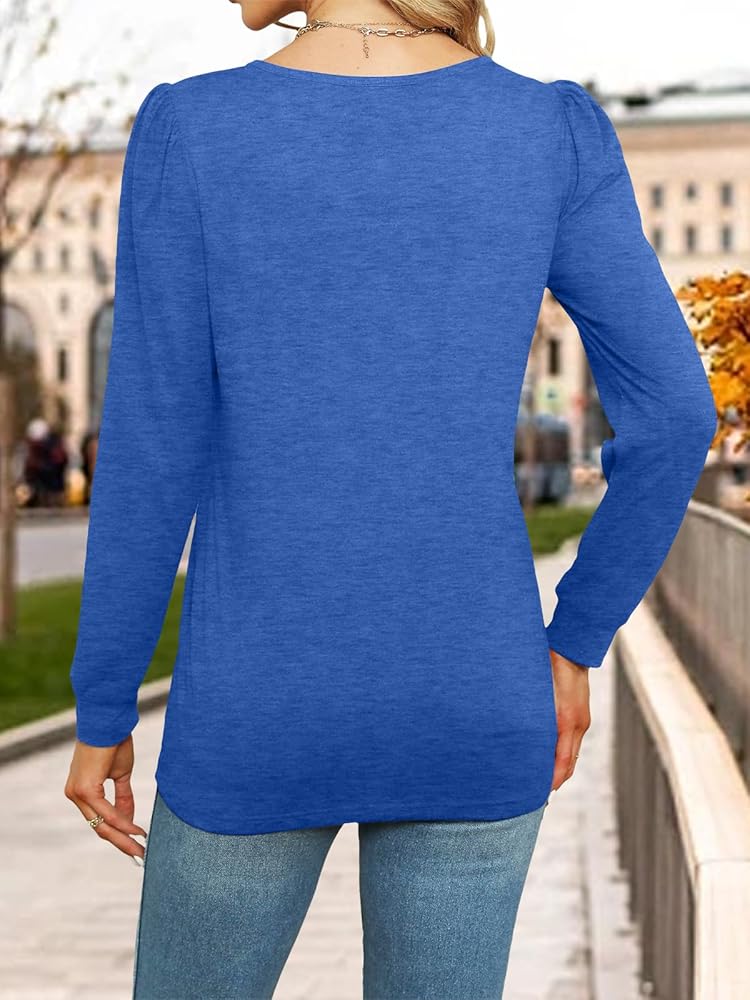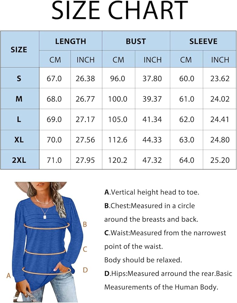 【DESIGN】This fashion and cute women's shirt dressy are designed with round neck, long puff sleeve and pleated front, the loose fitted and rounded hemline can hide the bulges and hips, perfect fit with a little room around the chest and hips.