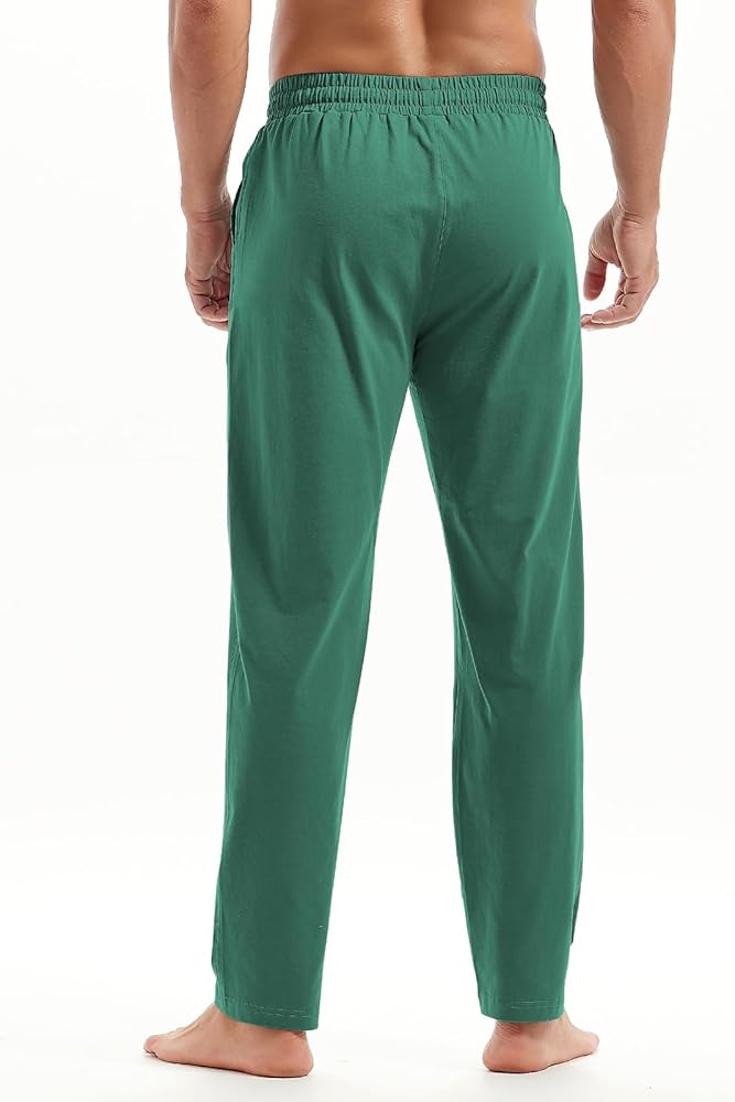 Mens cotton yoga Sweatpants. These mens jersey pants made of 95%cotton and 5%spandex, high quality stretchy fabric. Soft and breathable, give you a comfortable wearing experience.