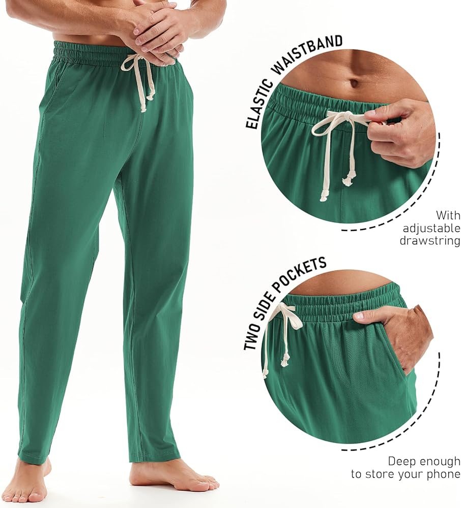Mens Lounge Pants with Pockets. Two side pockets, deep enough to storage your phone and keys, free your hands when lounging. Mens athletic pants with drawstring. Provide the maximum comfort for you, suitable for all kinds of sports and daily casual wear.