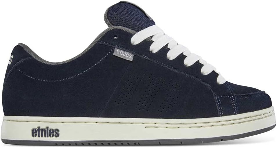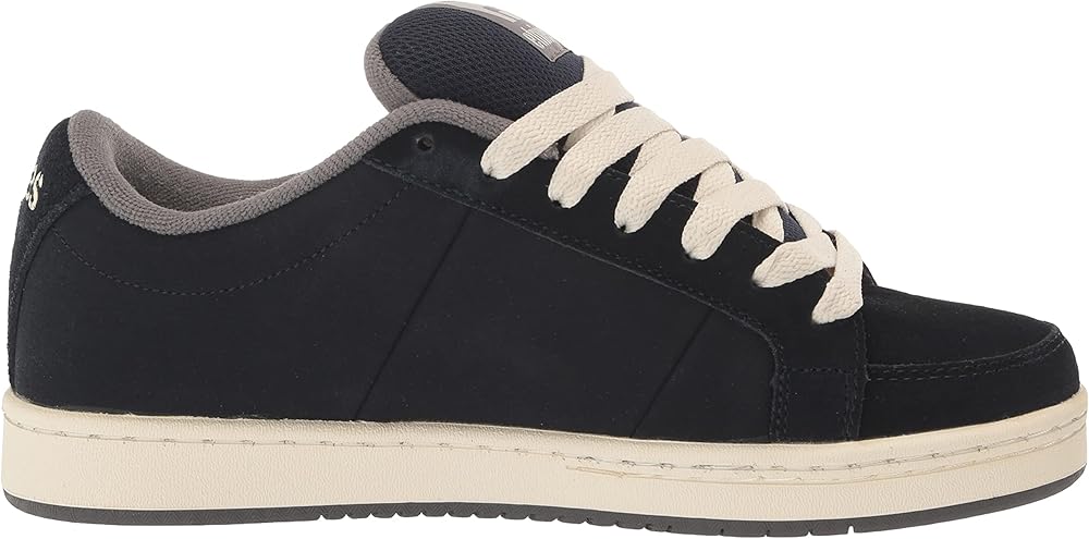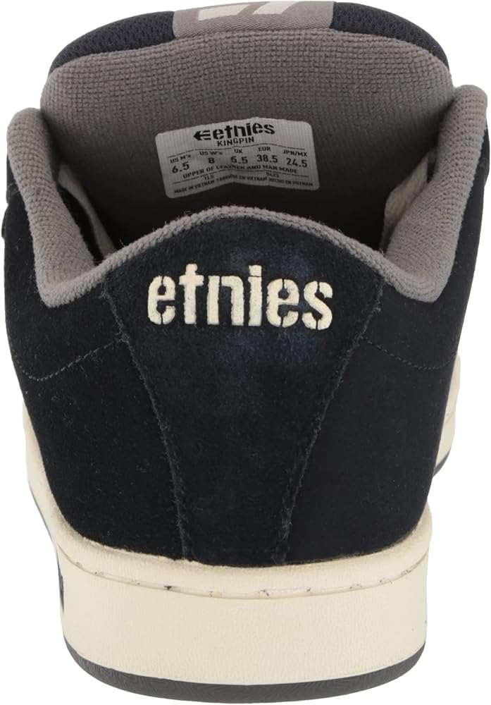 Rip it up like skater royalty in the Kingpin shoe from etnies. The sturdy upper is perforated for breathability and offers adjustable lacing, while heavy-duty padding on the collar and tongue adds the stability you need to land your most difficult tricks. The herringbone-treaded outsole offers superior grip, whether you need it for the ramps or the street.