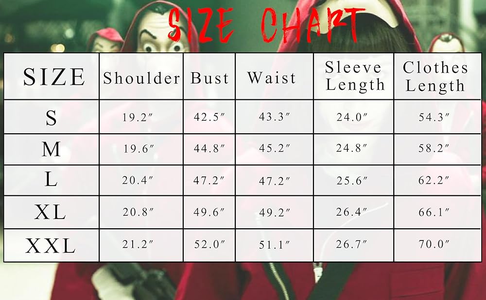 Precise Fit: Ensure the perfect fit by referring to our accurate size chart. Select the right size for an outfit that not only captures the essence of the show but also guarantees comfort throughout your themed adventure.