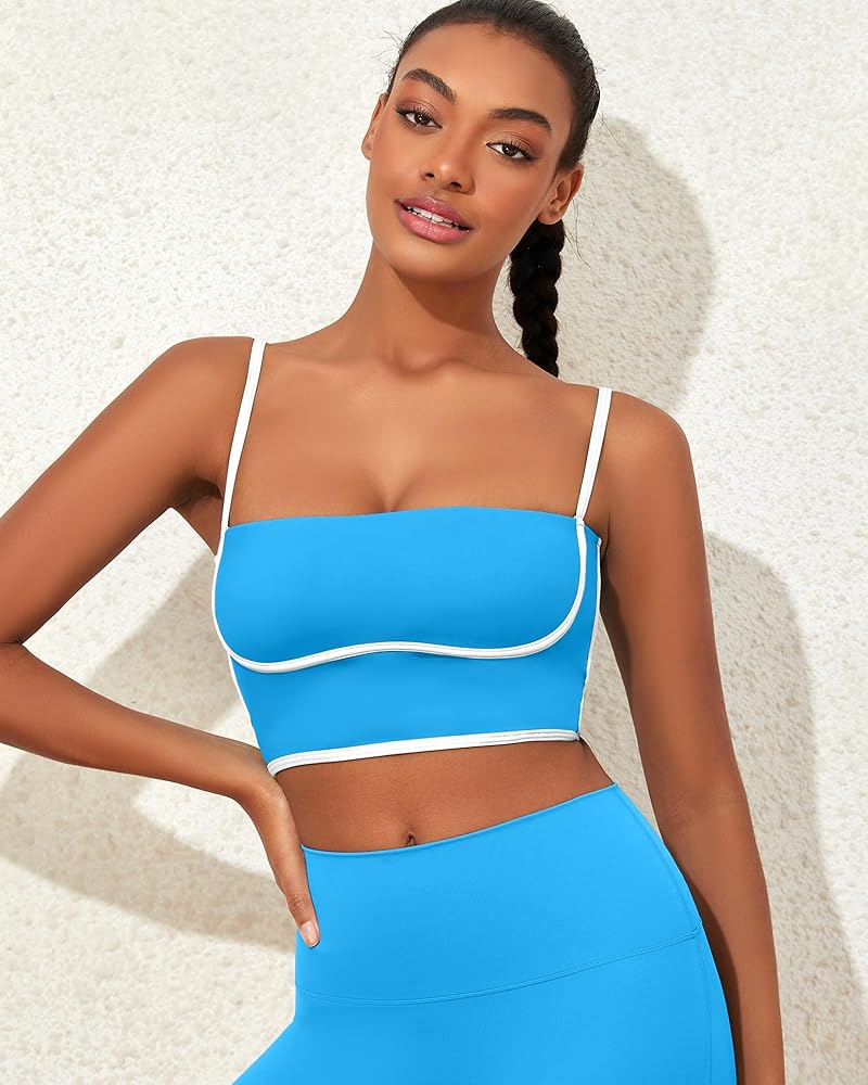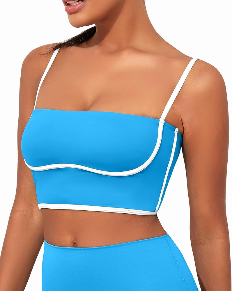 Sexy Sports Bras For Lady Going Out Tops: Contrasting piping gives this bandeau crop tops for women trendy that little extra while still looking effortless, and the integration of fashion elements makes this womens camisole bras suitable for everyday casual wear. The lightweight womens work out crop tops gym makes it simple to get your perfect fit.