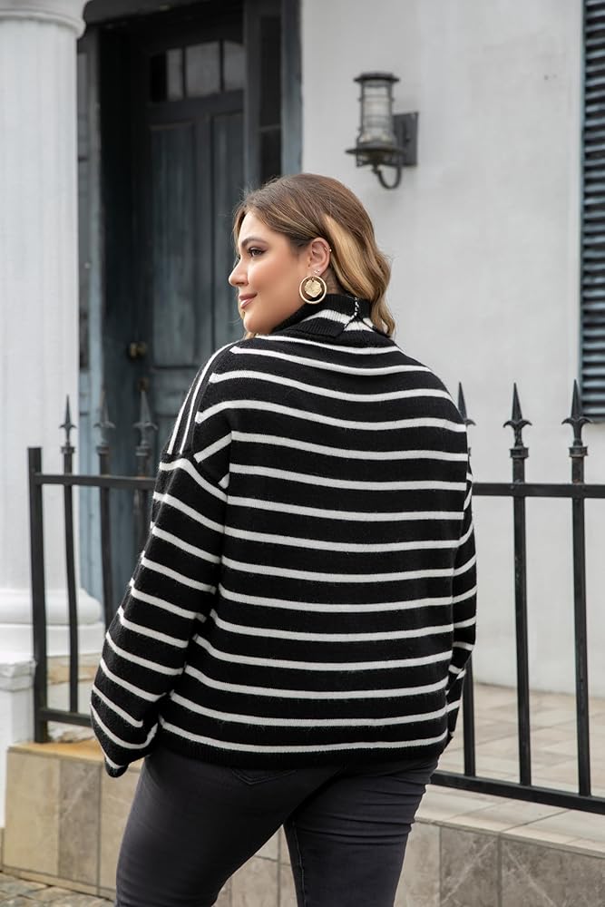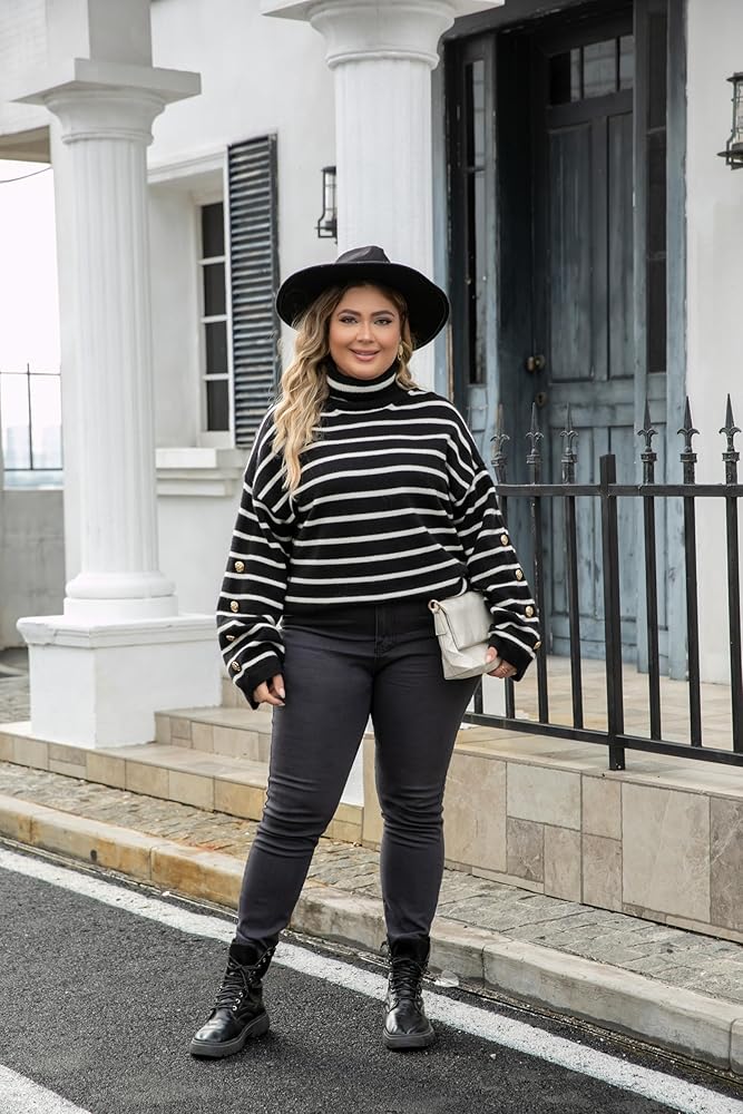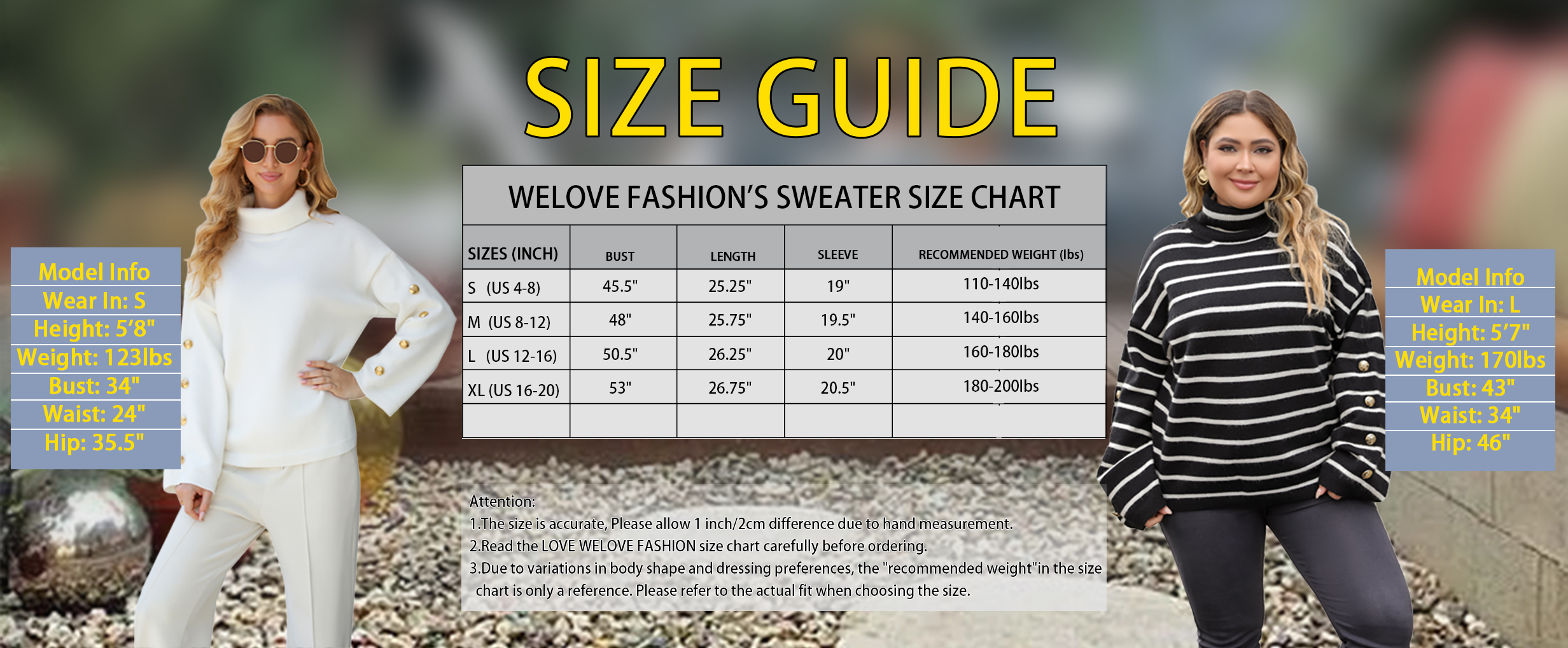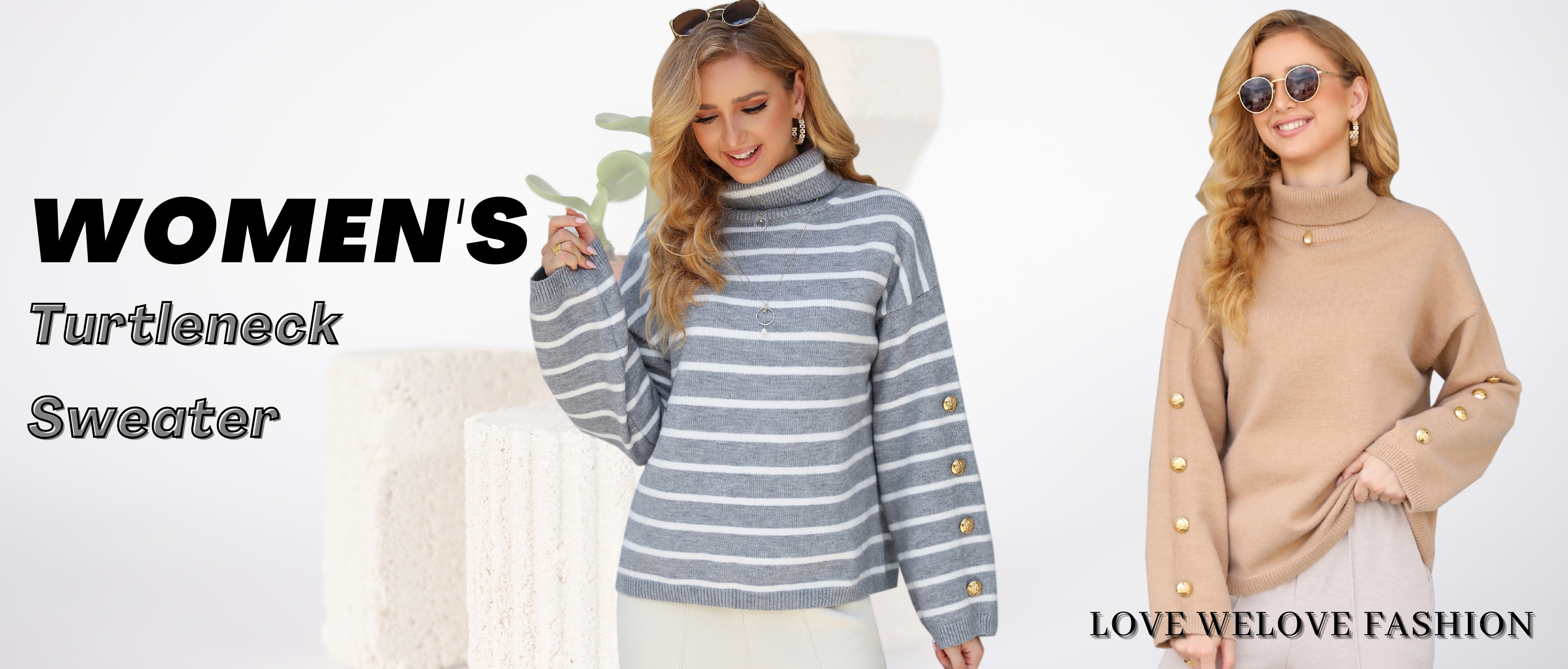 Design: Pull on closure. Warm turtle neck,long sleeve,decorative buttons sewn on sleeves (non-functional, if you prefer a simpler style, you can remove the buttons without causing any damage to the garment). basic solid color and classic stripes match everything and never go out of style. ribbed cuffs,neck and hem. dropped shoulders,oversized style.Suits For All Kinds Of Body Shape. this is definitely the versatile tops you're looking for!