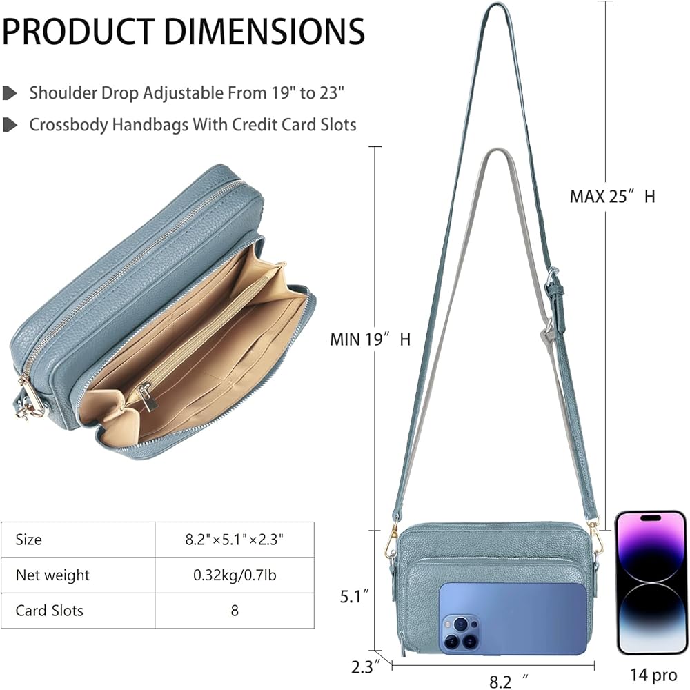MATERIAL:Cross body purse made from premium PU leather, relatively soft and comfortable. This crossbody bag is durable and waterproof. The high-quality zipper enhances its lifespan.