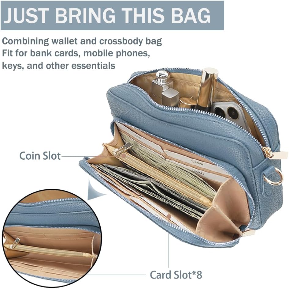 FUNCTION:Combining the features of a wallet and a crossbody bag, this crossbody bag is perfect for storing keys, phones, cards, and other essentials you might need while out. The card slot design allows you to easily locate your cards when needed, eliminating the need to carry a separate wallet.It is the best gift for Christmas, Valentine's Day, birthday and any anniversary.