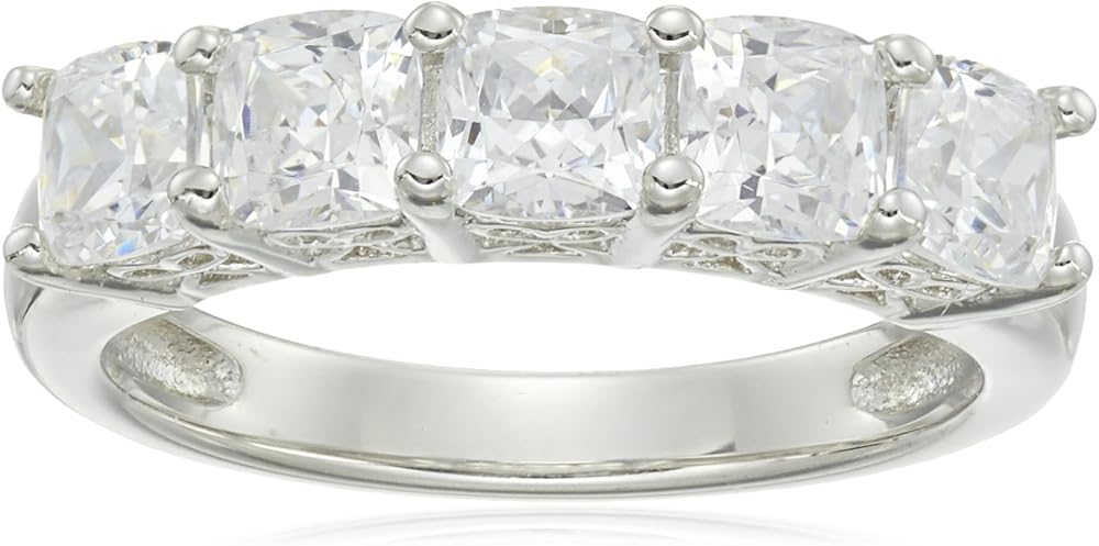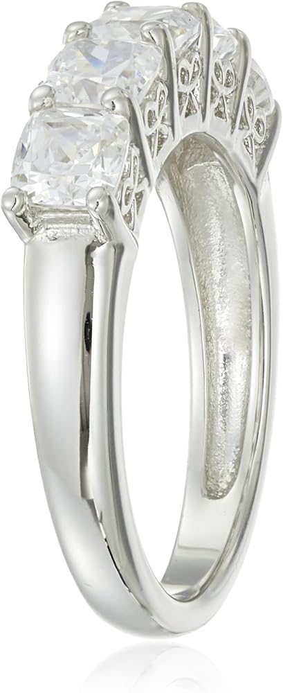 STYLE: This timeless 5-stone ring is 4.0mm wide featuring 3.5mm asscher cut Infinite Elements Cubic Zirconia in prong setting with a 3-carat total weight; perfect on its own or wear with your favorite Amazon Collection jewelry