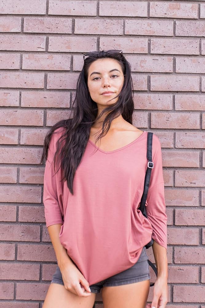 DOLMAN TUNIC TOP FLATTERS ALL BODY TYPES: Loose flowy bodice with a fitted waist of shirt looks great on everyone. Designed to be an oversized tee with fitted three quarter fitted forearm sleeves, this shirt is super comfortable while also super stylish.