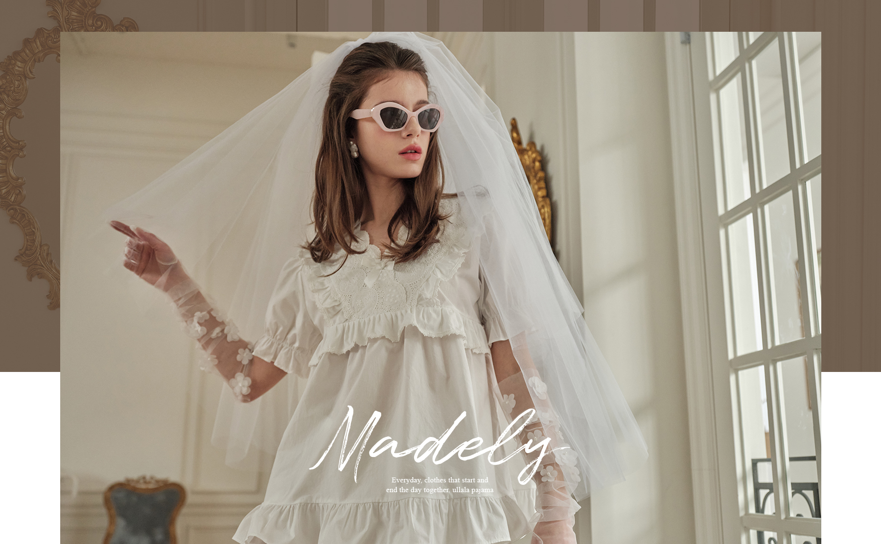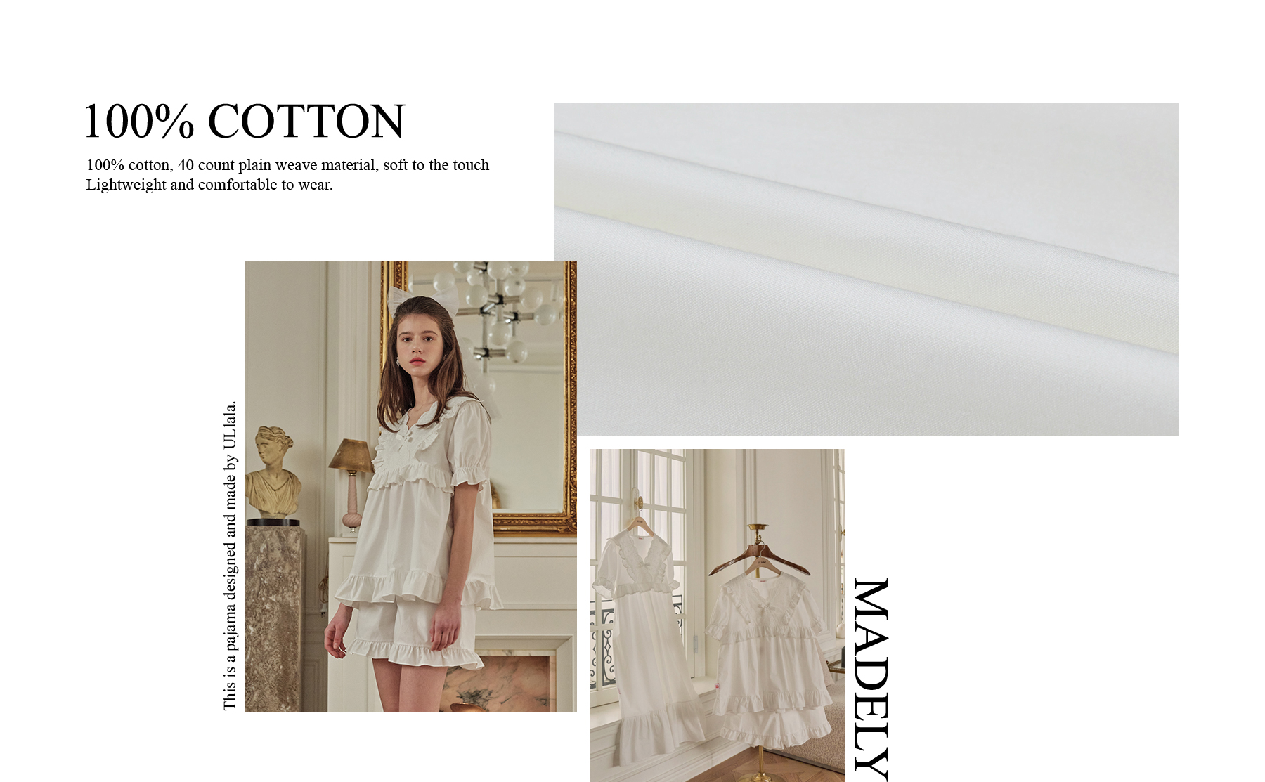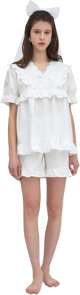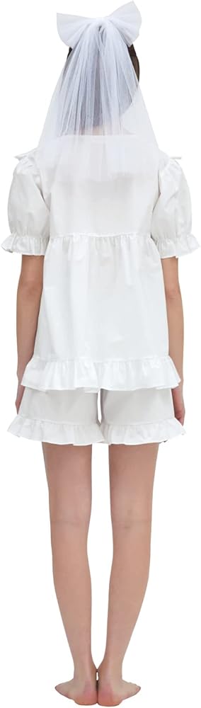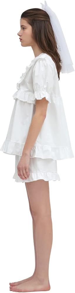 Design & Characteristic: This dress pajama is made of pure white fabric with a clear and clean feeling.Large lace collars create a feminine mood and add loveliness with small frill decorations and lace.Rubber is added to the sleeves to increase activity with volume.