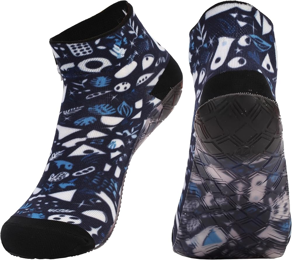 ♥SIZE: X-S: US Unisex 3.5-4(Sole Length 8.27-8.46in); S: US Unisex 4.5-6(Sole Length 8.66-9.25in); M: US Unisex 6.5-7.5(Sole Length 9.45-9.84in); L: US Unisex 8-9(Sole Length 10.04-10.43in); X-L: US Unisex 9.5-11(Sole Length 10.63-11.22in);XX-L: US Unisex 11.5-12.5(Sole Length 11.42-11.81in). Durable, Soft Touch. No-toxic safe sole and upper materials. Take our weather, fatigue, temperature resistant, eco-friendly beach socks shoes when you go to vacation and enjoy your free time.