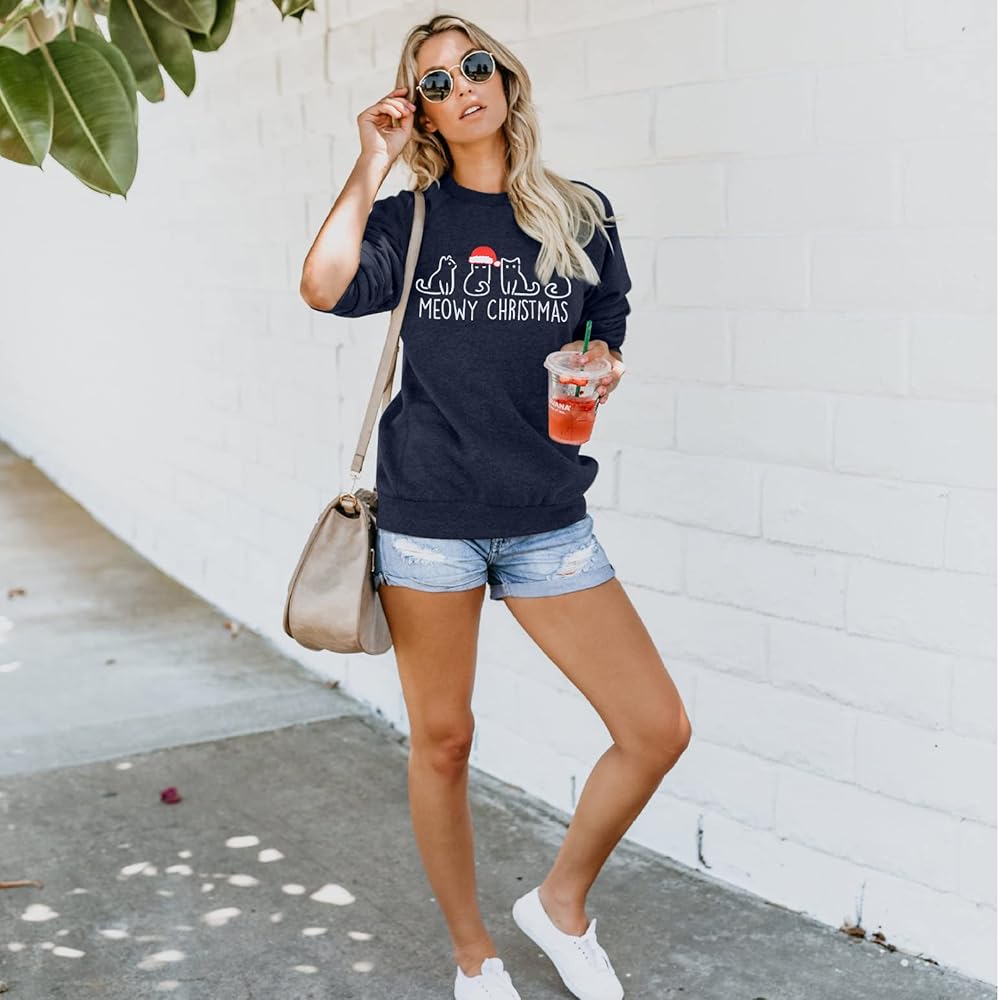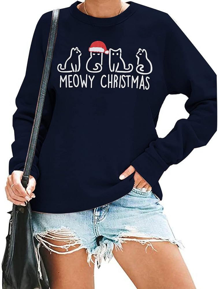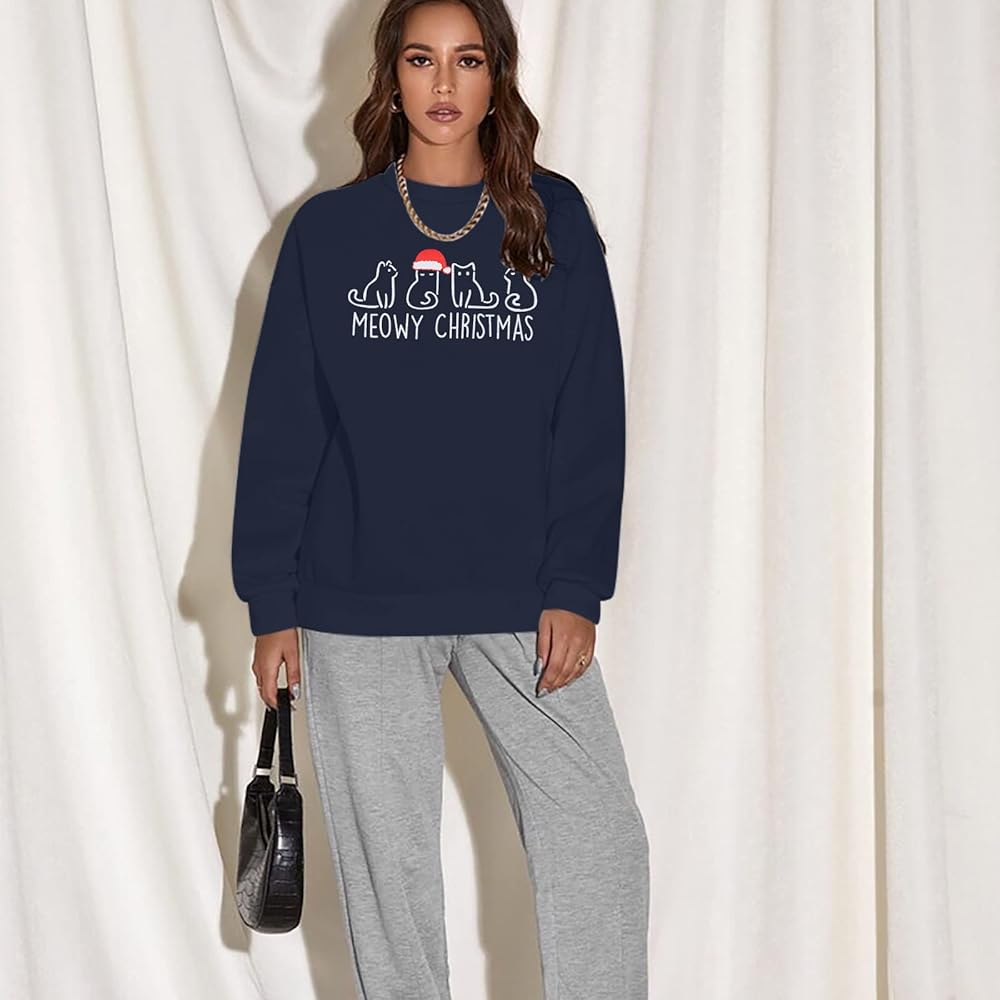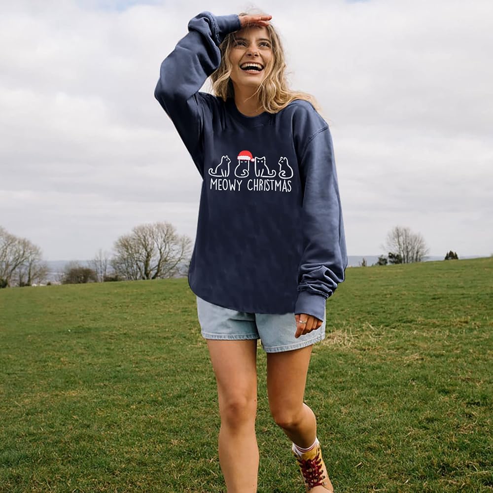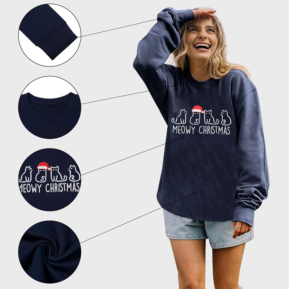 Care: Suggested to hand or machine wash in cold water, do not dry flat or blend. It will not fall off after repeated cleaning. 5*meowy christmas sweatshirt.