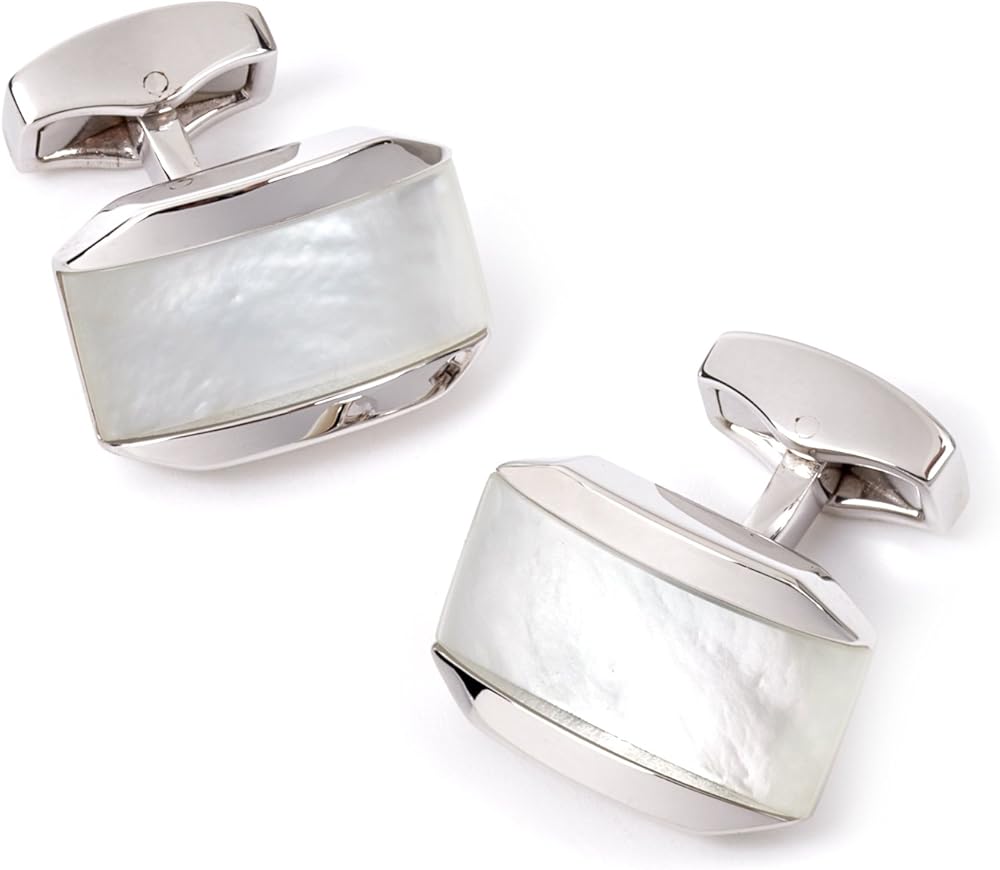 A sleek inlay of lustrous white, black or blue mother of pearl has been matched with a cabochon of quartz, cleverly combined to create a 'doublet'. This unusual collaboration of materials has been inlaid into our classic quadrato, bullseye and tonneau case, finished with either rhodium or gunmetal plating. Also available as shirt stud sets. A classic gift that never goes out of style.
