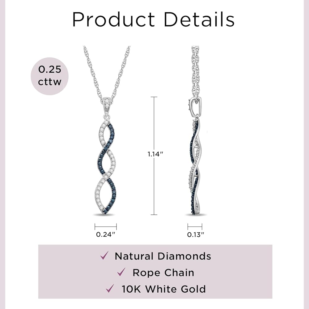 Radiate elegance with this diamond twist pendant necklace studded with 1/4 Cttw round black and white diamonds set in 10K white gold