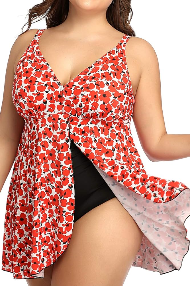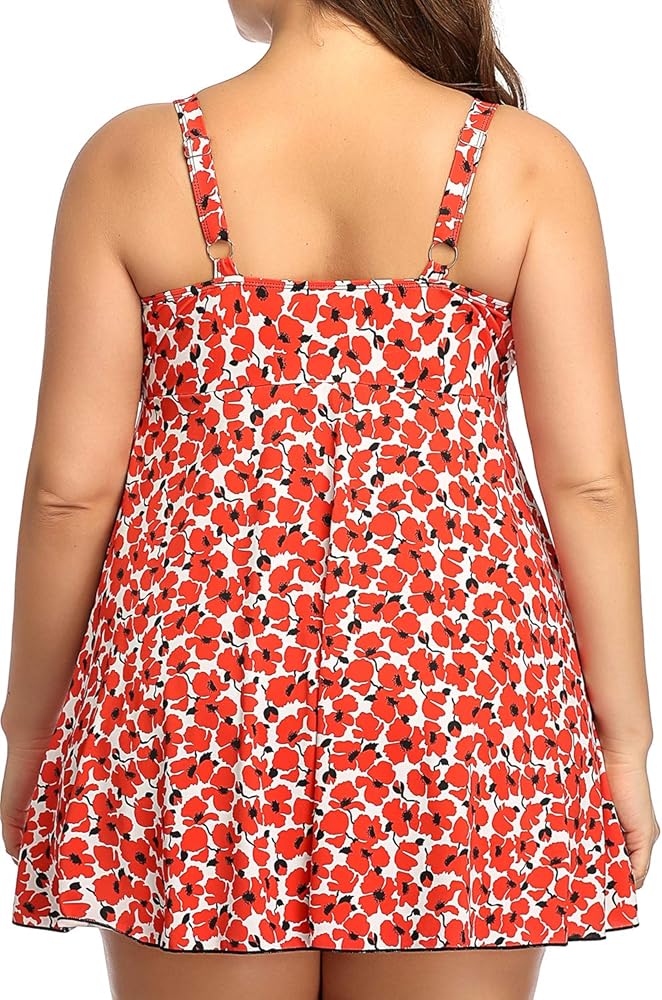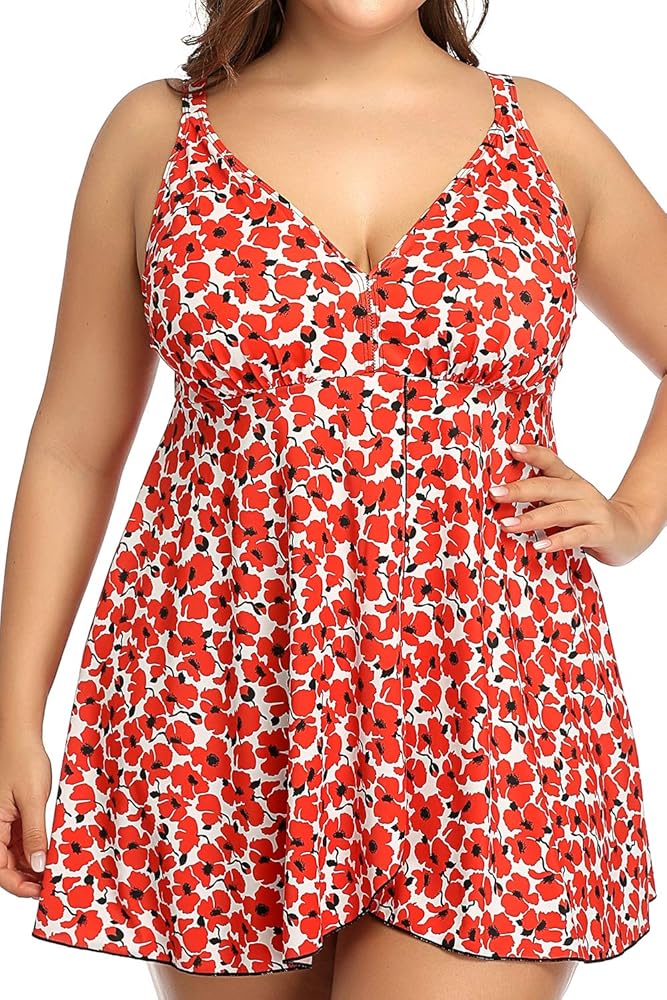 PERONA Women's Swimdress Plus Size Swimwear One Piece Swimsuit Floral Print Bathing Suit