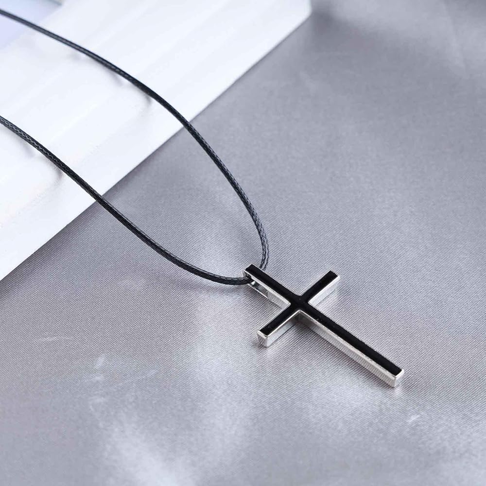 Andelaisi Boho Black Cross Necklace Choker Black Leather Necklace Choker Punk Cross Crucifix Necklace Vintage Jesus Cross Necklace Gothic Leather Rope Necklace Jewelry for Women