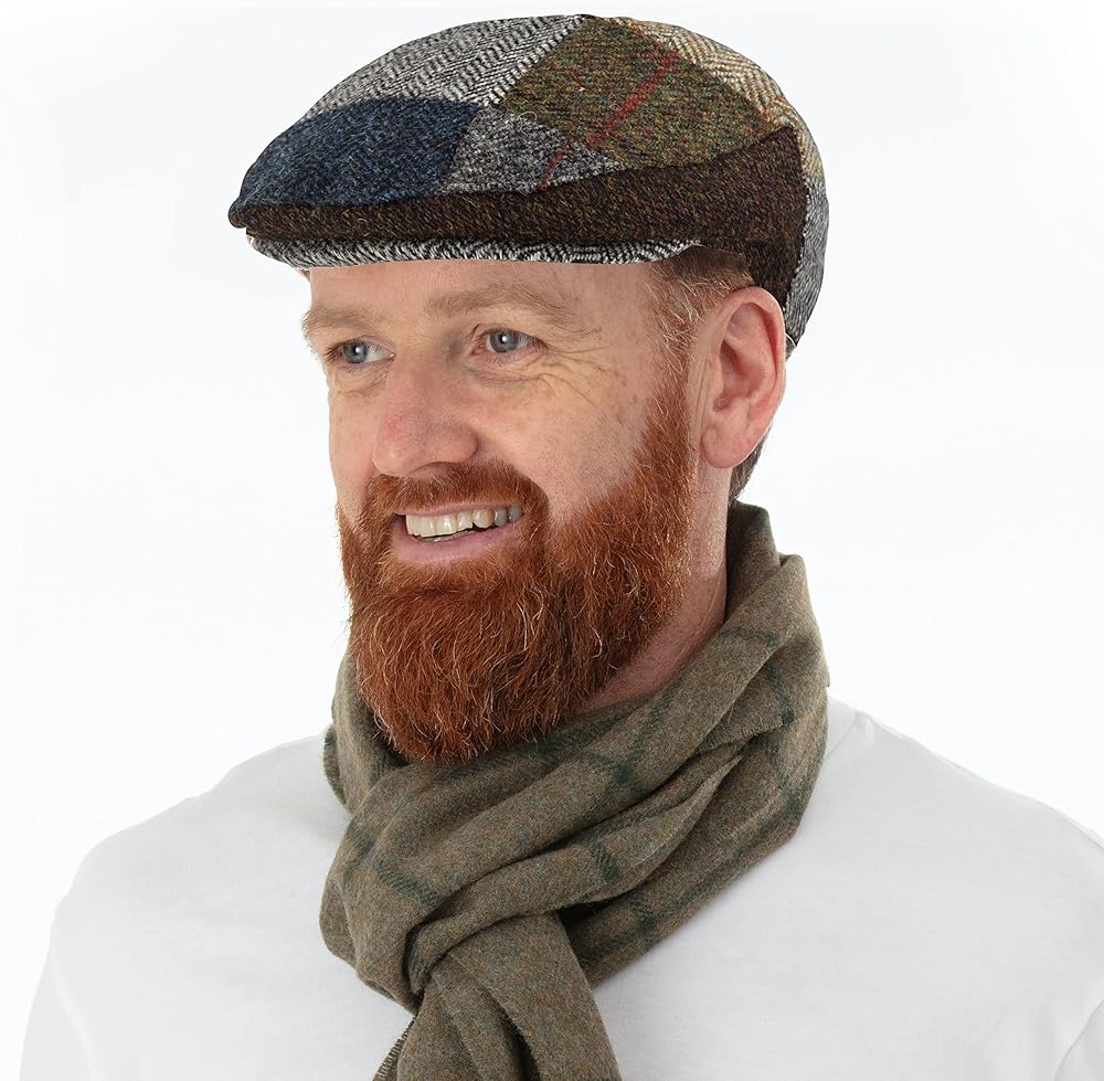 نمط الترقيع مصنوع يدويًا من قطع فردية من التويد المختلف، قبعاتنا فريدة من نوعها. تتضمن عظمة متعرجة وتويد مربعات. على غرار التويد المصنوع في أيرلندا، القبعات الأيرلندية، قبعات Scally للرجال