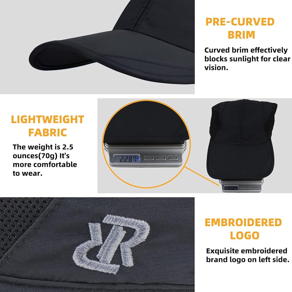 This running cap mades of 100% polyester soft, durable, and breathable fabric. Lightweight,about 2.3 oz(65 g), It is comfortable to wear all day long.