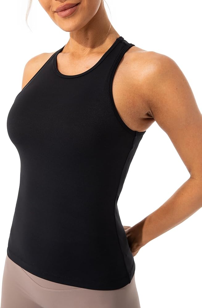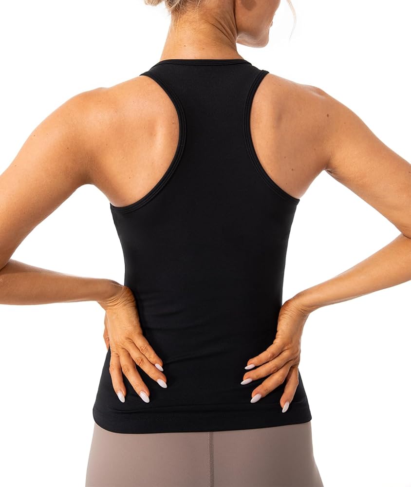Features: Racerback, crew neck, sleeveless tank top