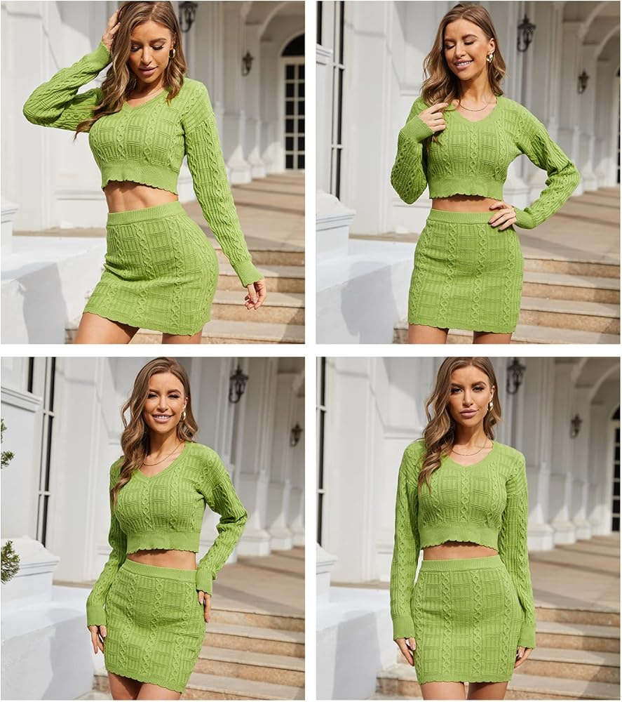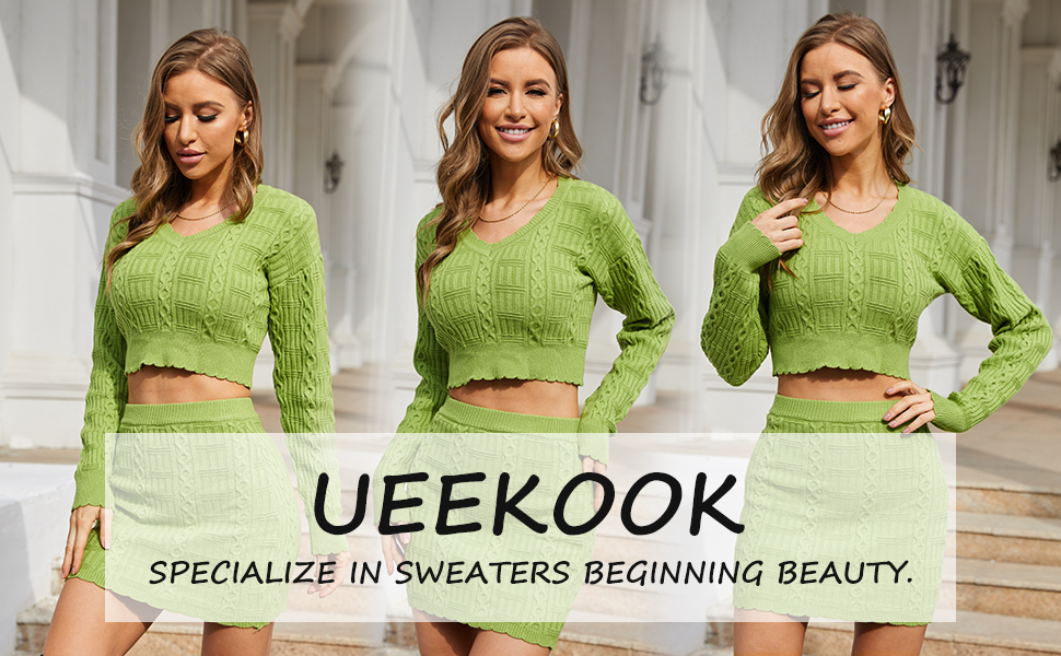 DESIGN IDEAS: The Slim-fit and stylish 2 pieces sweater suit is UEEKOOK's new design idea. We've set the Avocado Green just to cater to the pace of spring, symbolic of life. Birngs young and elegant feeling to be the beauty from crowds. The waist exposed outside and buttock skirt sweater set is aim to show your sexy curve and looks a city fashion beauty. The stretchy fabric can shape all kinds of body, so no worries the age and body outline, to wear it and show your confidence!