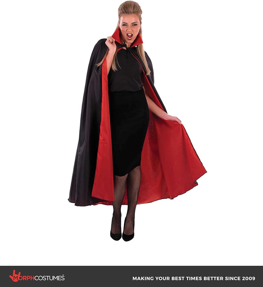 Vampire capes for adults, includes a long, high-collared black cape with red lining.
