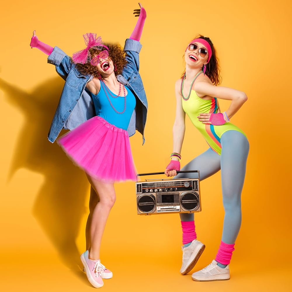 80s Party Supplies and More: 80s neon accessories are also suitable for bars, nightclubs, birthday party, band performances, 80s prom dress, Halloween, Cosplay accessories, 80s fancy dress for women.