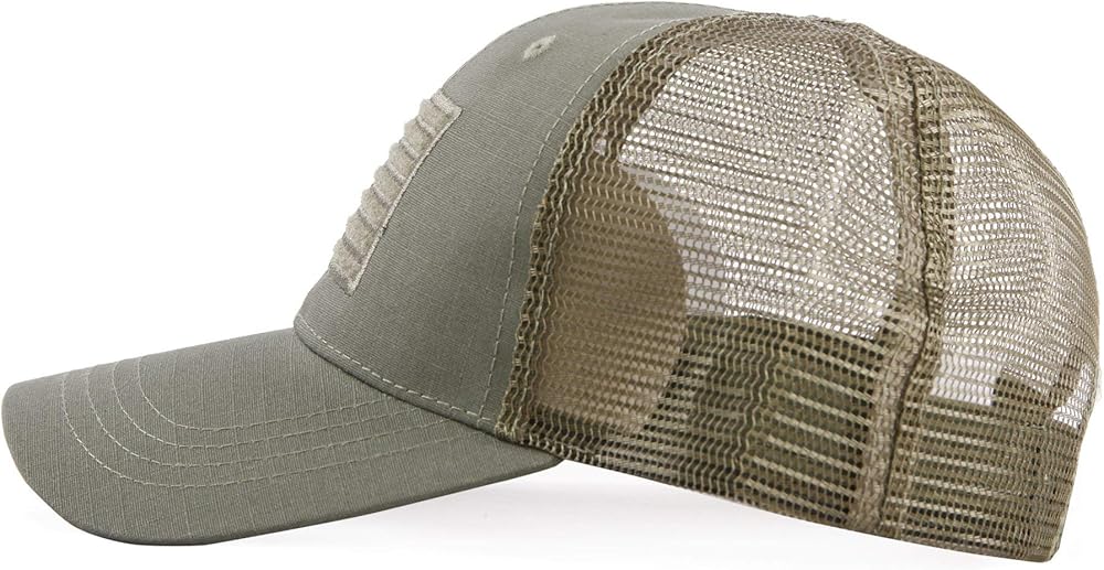 Show your patriotism with the American Flag Velcro Hat. The American Flag is embroidered over the loop for space for a hook and loop patch. This hat is comfortable and adjustable for a great fit. The Trucker Mesh Hat keeps your head cool with the breathable netted mesh. Stay looking good when you just want wake up, throw on a cap, and run out the door.